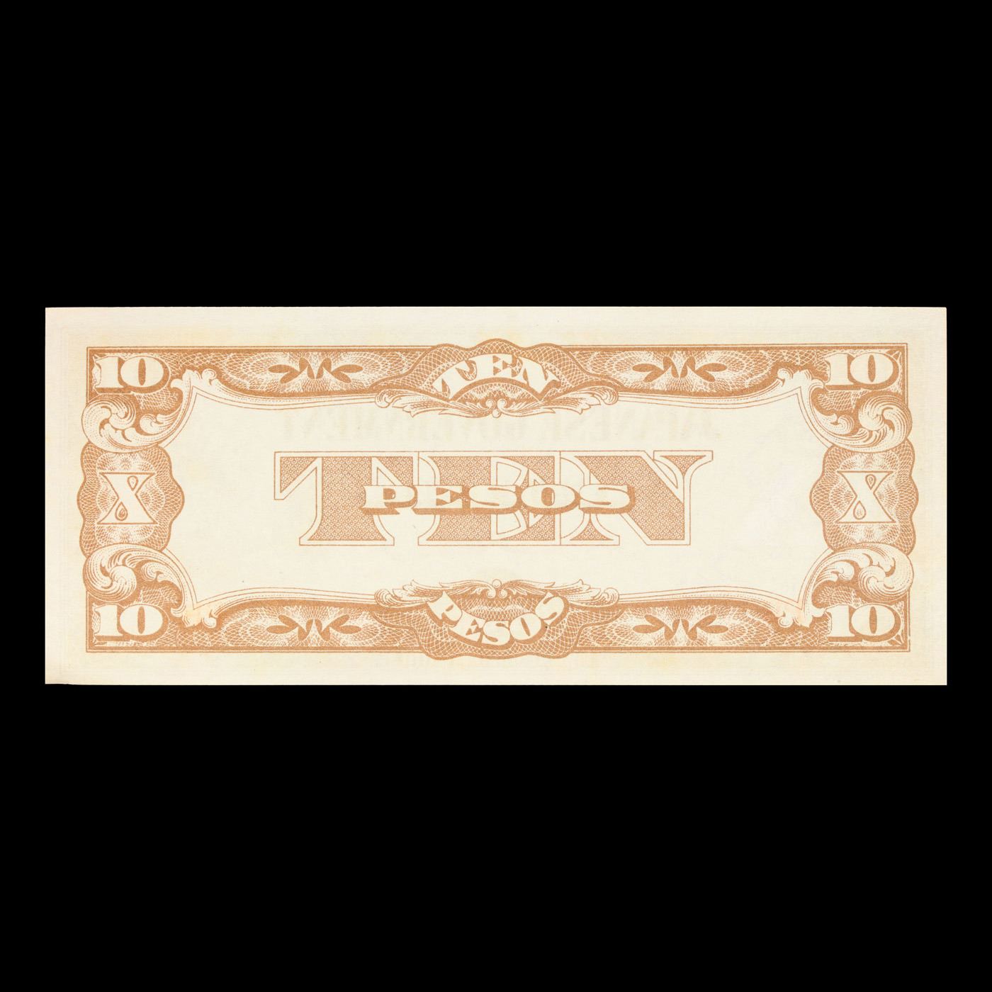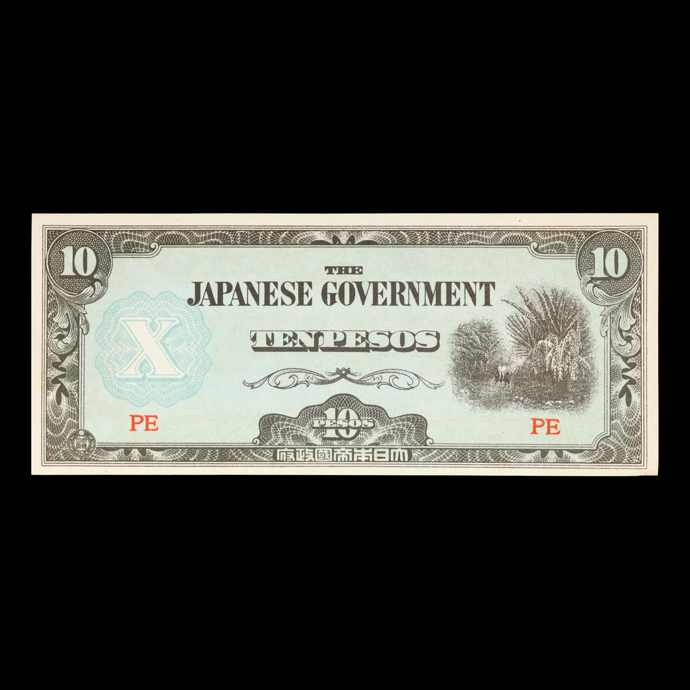 1942 Philippines Under Japanese (JIM) Occupation 10 Pesos Note P# 108A Grades Select CU. Japanese invasion money, officially known as Southern Development Bank Notes (Japanese: ??????? Dai T?-A Sens? gunpy?, "Greater East Asia War military scrip"), was currency issued by the Japanese Military Authority as a replacement for local currency after the conquest of colonies and other states in World War II. Japan printed this currency for many countries, including Malaysia, Singapore, North Borneo, Sarawak, Burma, Brunei, and several Oceania territories controlled by Australia.