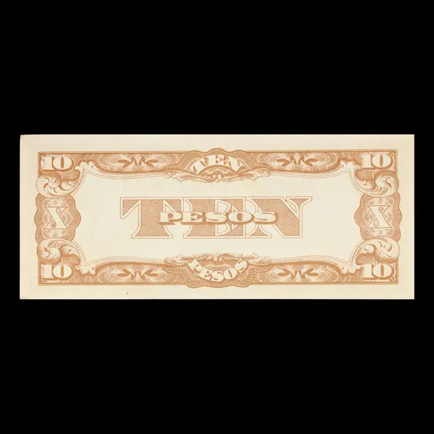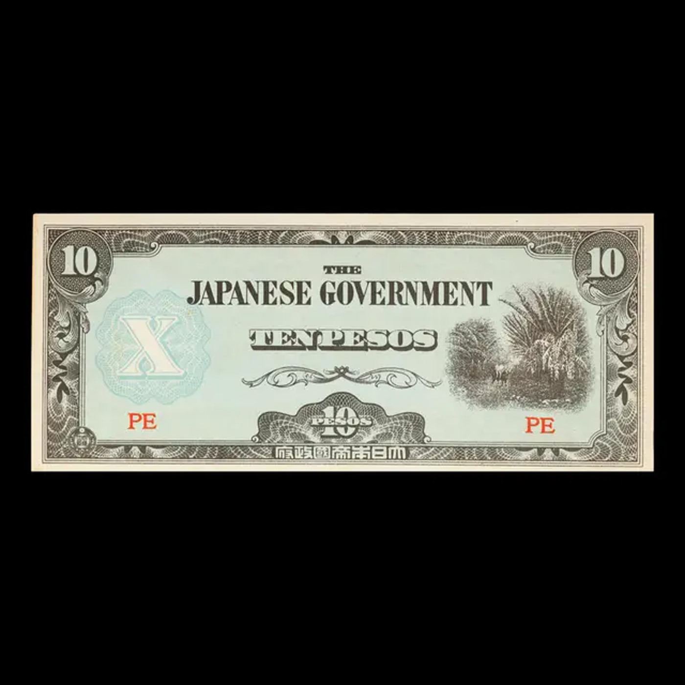 1942 Philippines Under Japanese (JIM) Occupation 10 Pesos Note P# 108A Grades Select CU. Japanese invasion money, officially known as Southern Development Bank Notes (Japanese: ??????? Dai T?-A Sens? gunpy?, "Greater East Asia War military scrip"), was currency issued by the Japanese Military Authority as a replacement for local currency after the conquest of colonies and other states in World War II. Japan printed this currency for many countries, including Malaysia, Singapore, North Borneo, Sarawak, Burma, Brunei, and several Oceania territories controlled by Australia.
