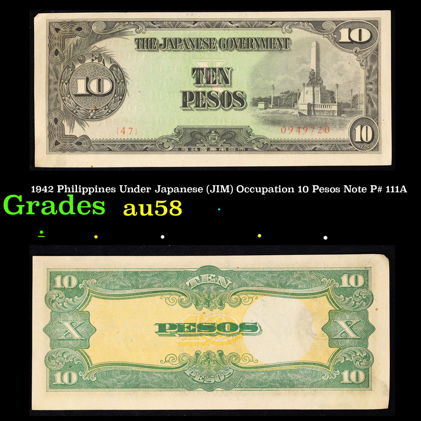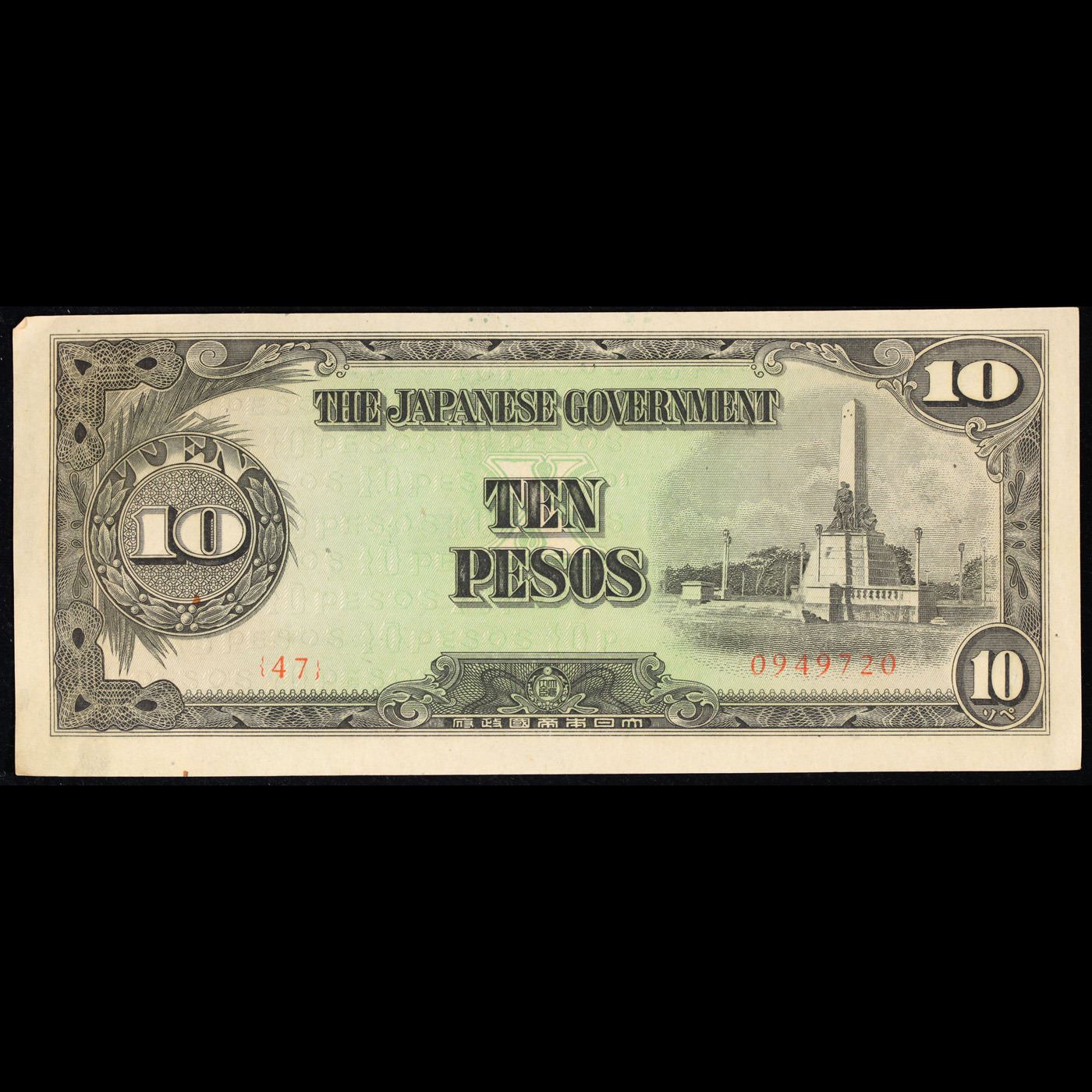 1942 Philippines Under Japanese (JIM) Occupation 10 Pesos Note P# 111A Grades Choice AU/BU Slider. Japanese invasion money, officially known as Southern Development Bank Notes (Japanese: ??????? Dai T?-A Sens? gunpy?, "Greater East Asia War military scrip"), was currency issued by the Japanese Military Authority as a replacement for local currency after the conquest of colonies and other states in World War II. Japan printed this currency for many countries, including Malaysia, Singapore, North Borneo, Sarawak, Burma, Brunei, and several Oceania territories controlled by Australia.