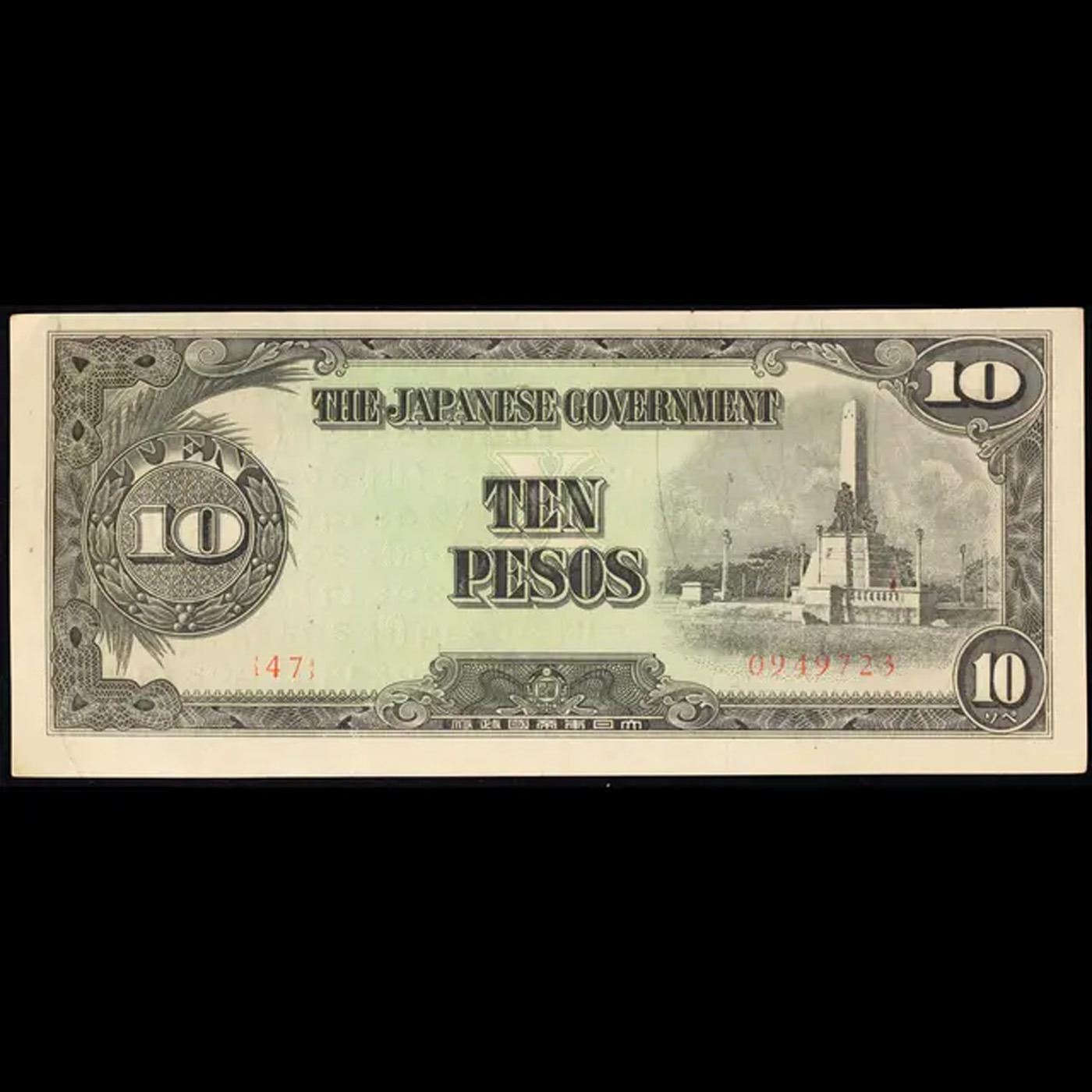1942 Philippines Under Japanese (JIM) Occupation 10 Pesos Note P# 111A Grades Choice AU/BU Slider. Japanese invasion money, officially known as Southern Development Bank Notes (Japanese: ??????? Dai T?-A Sens? gunpy?, "Greater East Asia War military scrip"), was currency issued by the Japanese Military Authority as a replacement for local currency after the conquest of colonies and other states in World War II. Japan printed this currency for many countries, including Malaysia, Singapore, North Borneo, Sarawak, Burma, Brunei, and several Oceania territories controlled by Australia.