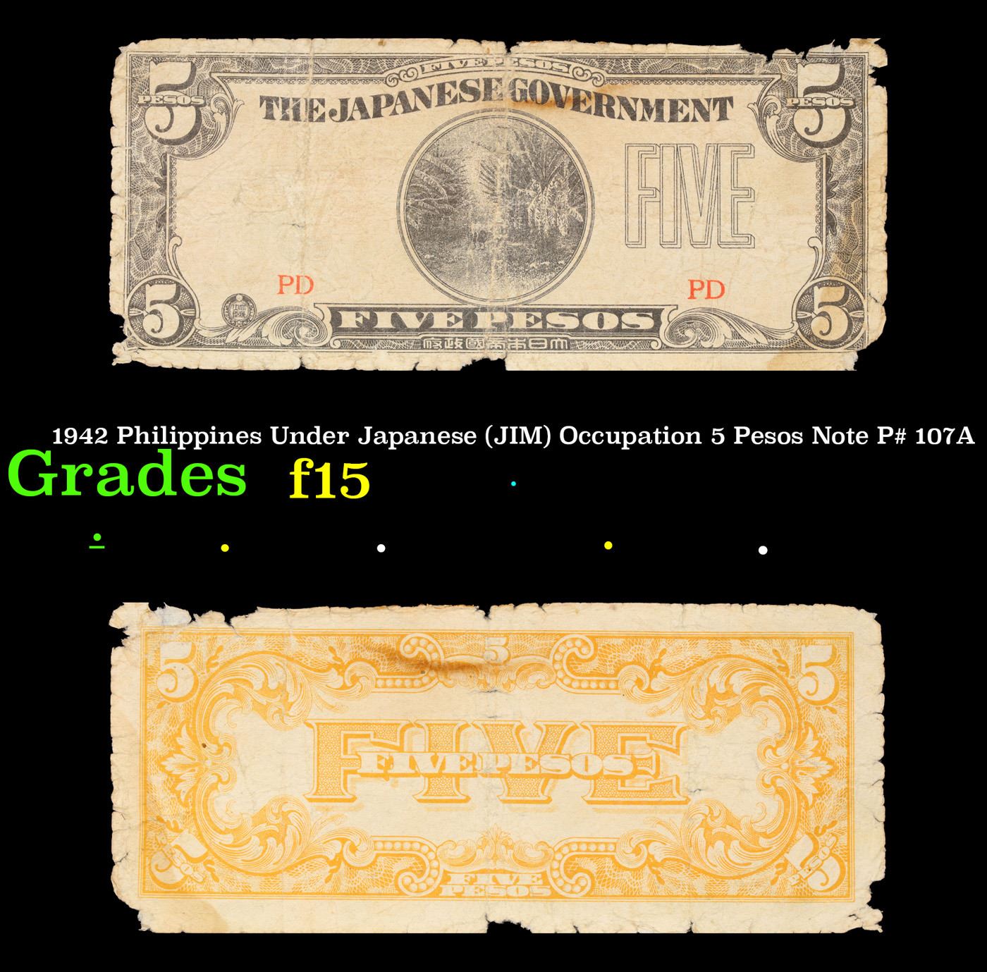 1942 Philippines Under Japanese (JIM) Occupation 5 Pesos Note P# 107A Grades f+. Japanese invasion money, officially known as Southern Development Bank Notes (Japanese: ??????? Dai T?-A Sens? gunpy?, "Greater East Asia War military scrip"), was currency issued by the Japanese Military Authority as a replacement for local currency after the conquest of colonies and other states in World War II. Japan printed this currency for many countries, including Malaysia, Singapore, North Borneo, Sarawak, Burma, Brunei, and several Oceania territories controlled by Australia.