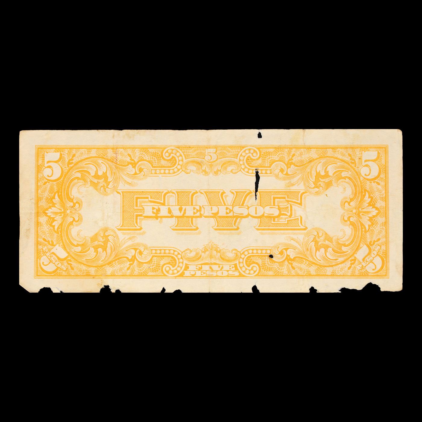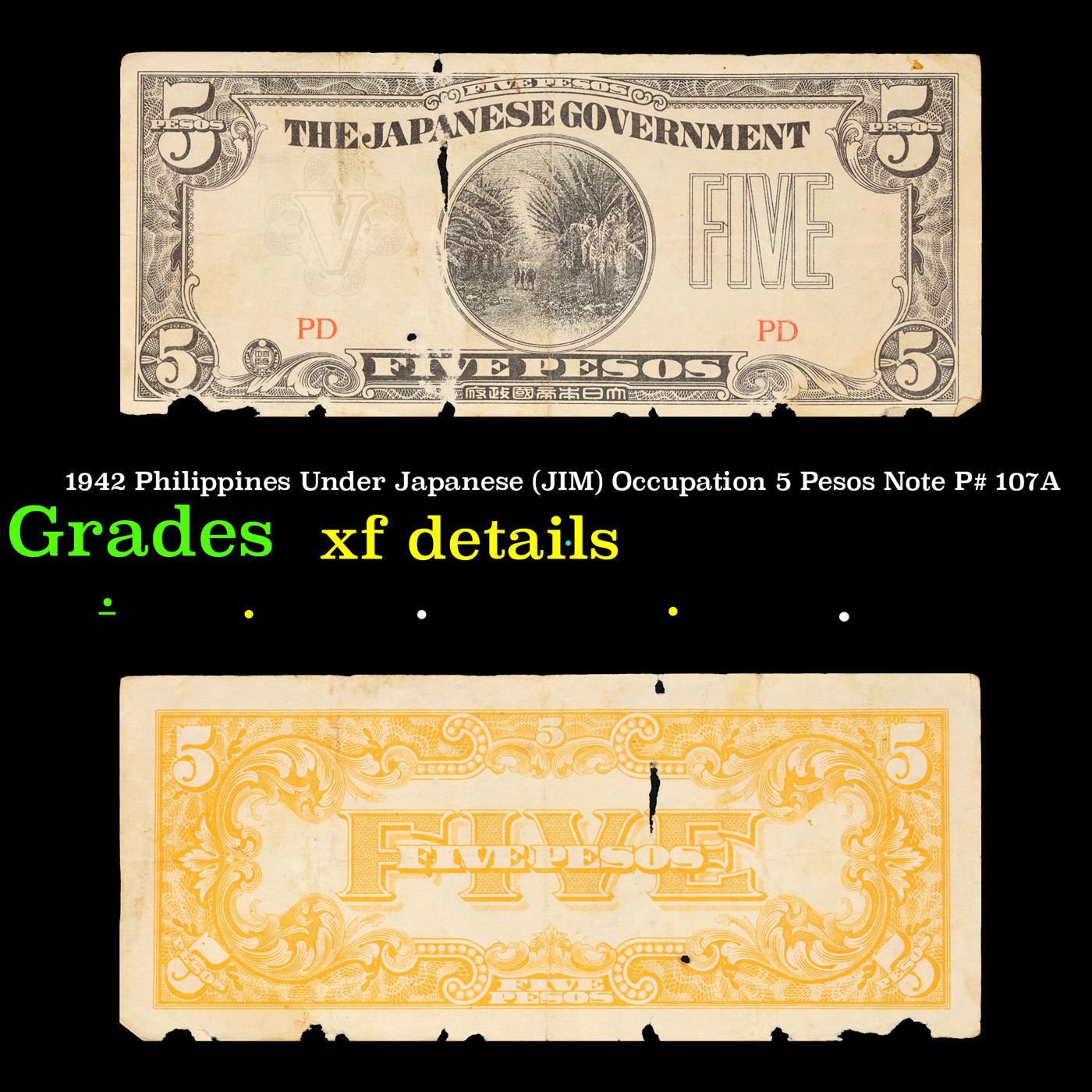 1942 Philippines Under Japanese (JIM) Occupation 5 Pesos Note P# 107A Grades xf details