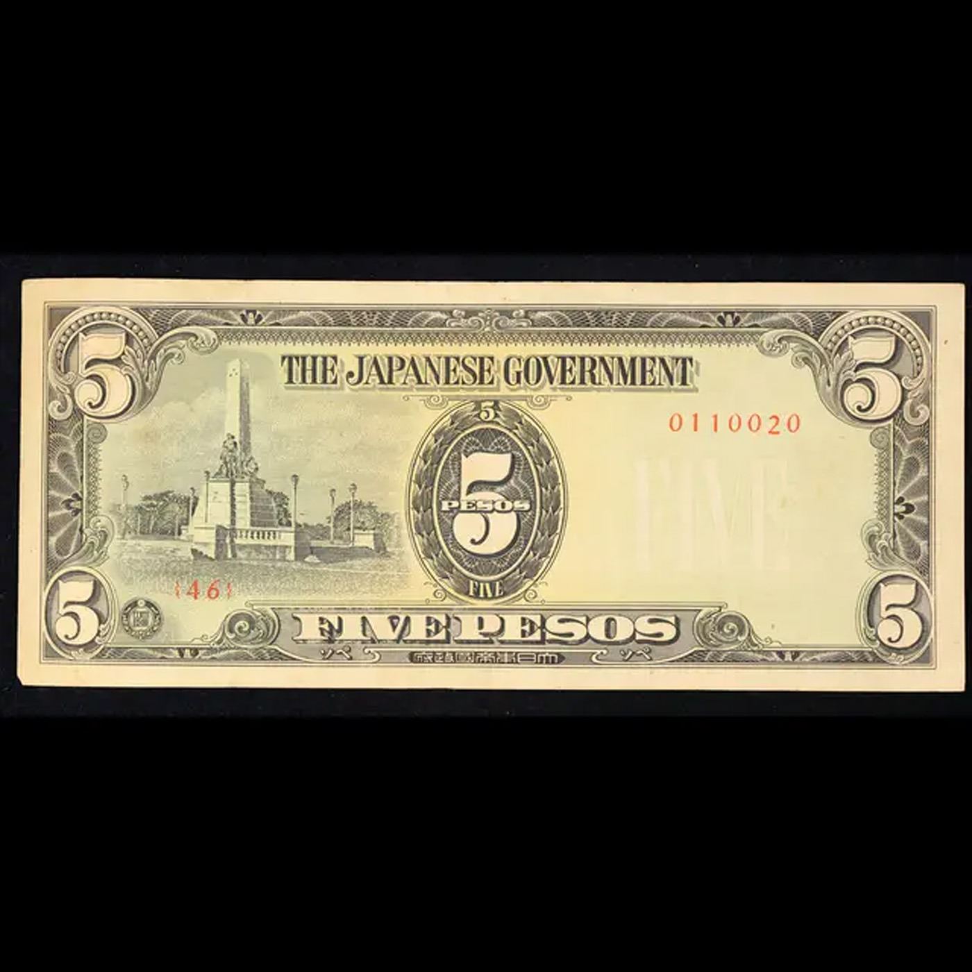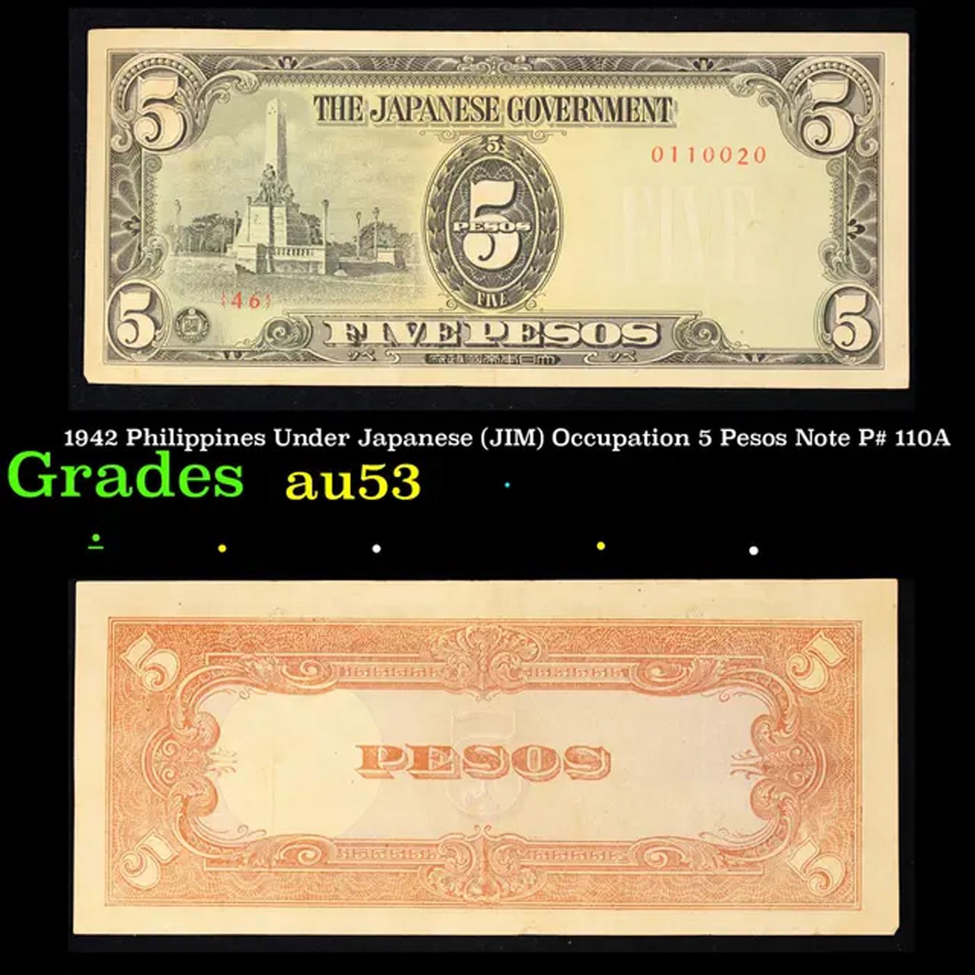 1942 Philippines Under Japanese (JIM) Occupation 5 Pesos Note P# 110A Grades Select AU.