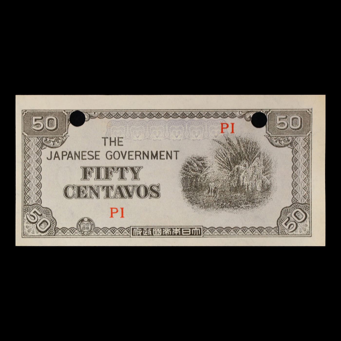 1942 Philippines Under Japanese (JIM) Occupation 50 Centavo Note P# 105A Grades Select CU. Japanese invasion money, officially known as Southern Development Bank Notes (Japanese: ??????? Dai T?-A Sens? gunpy?, "Greater East Asia War military scrip"), was currency issued by the Japanese Military Authority as a replacement for local currency after the conquest of colonies and other states in World War II. Japan printed this currency for many countries, including Malaysia, Singapore, North Borneo, Sarawak, Burma, Brunei, and several Oceania territories controlled by Australia.
