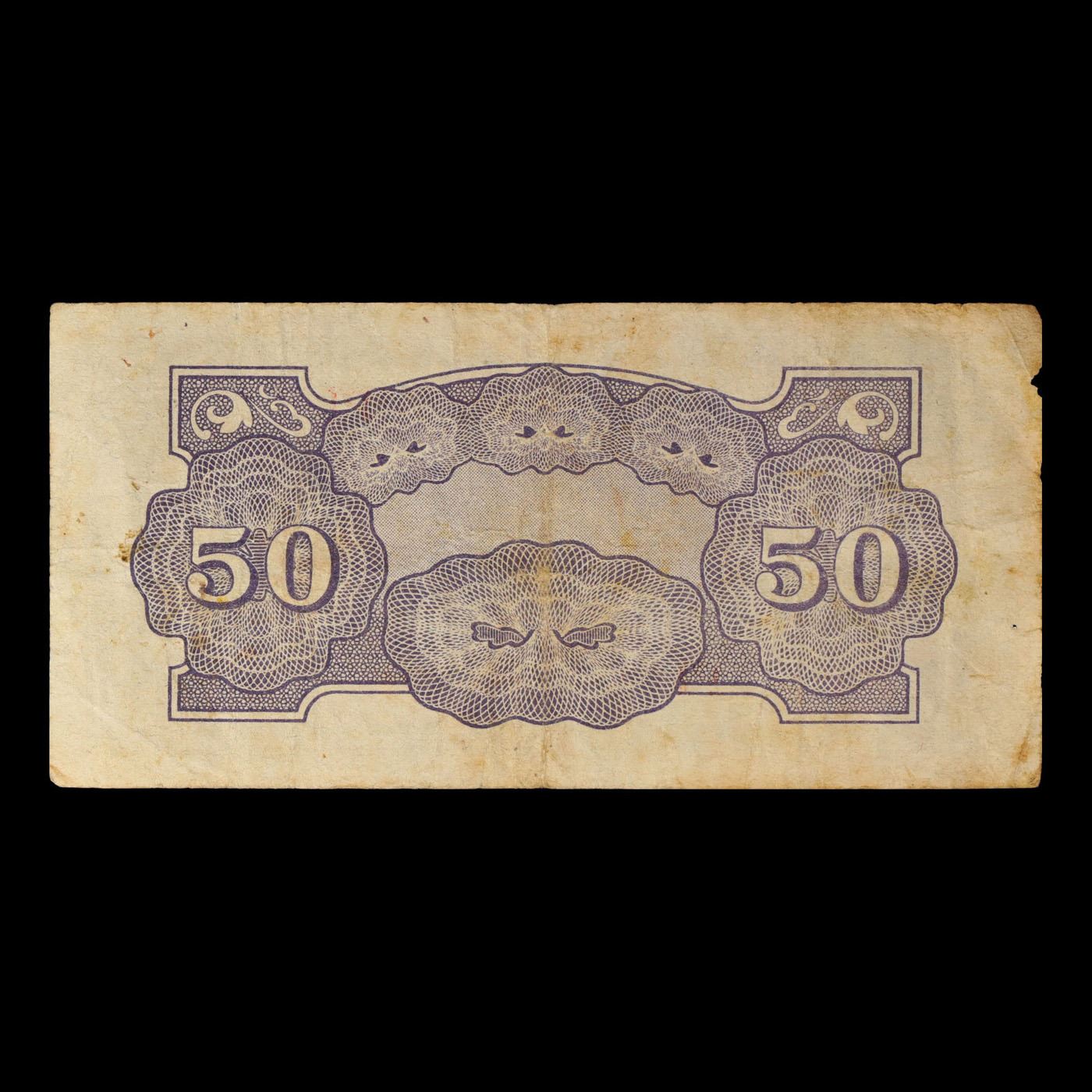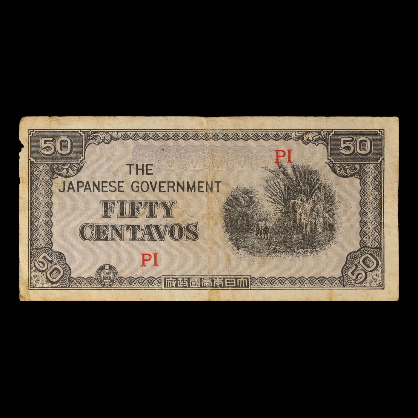 1942 Philippines Under Japanese (JIM) Occupation 50 Centavo Note P# 105A Grades vf++. Japanese invasion money, officially known as Southern Development Bank Notes (Japanese: ??????? Dai T?-A Sens? gunpy?, "Greater East Asia War military scrip"), was currency issued by the Japanese Military Authority as a replacement for local currency after the conquest of colonies and other states in World War II. Japan printed this currency for many countries, including Malaysia, Singapore, North Borneo, Sarawak, Burma, Brunei, and several Oceania territories controlled by Australia.