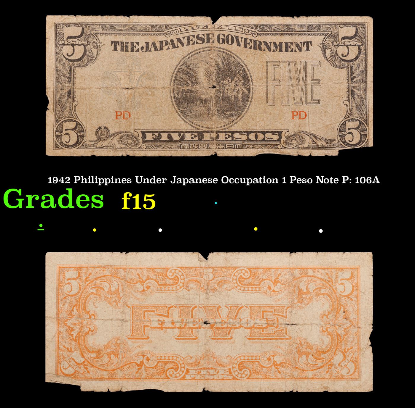 1942 Philippines Under Japanese Occupation 1 Peso Note P: 106A Grades f+. Japanese invasion money, officially known as Southern Development Bank Notes (Japanese: ??????? Dai T?-A Sens? gunpy?, "Greater East Asia War military scrip"), was currency issued by the Japanese Military Authority as a replacement for local currency after the conquest of colonies and other states in World War II. Japan printed this currency for many countries, including Malaysia, Singapore, North Borneo, Sarawak, Burma, Brunei, and several Oceania territories controlled by Australia.