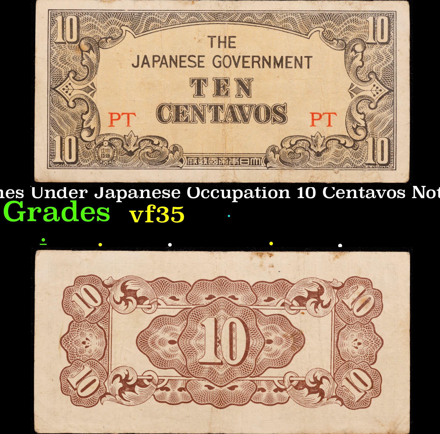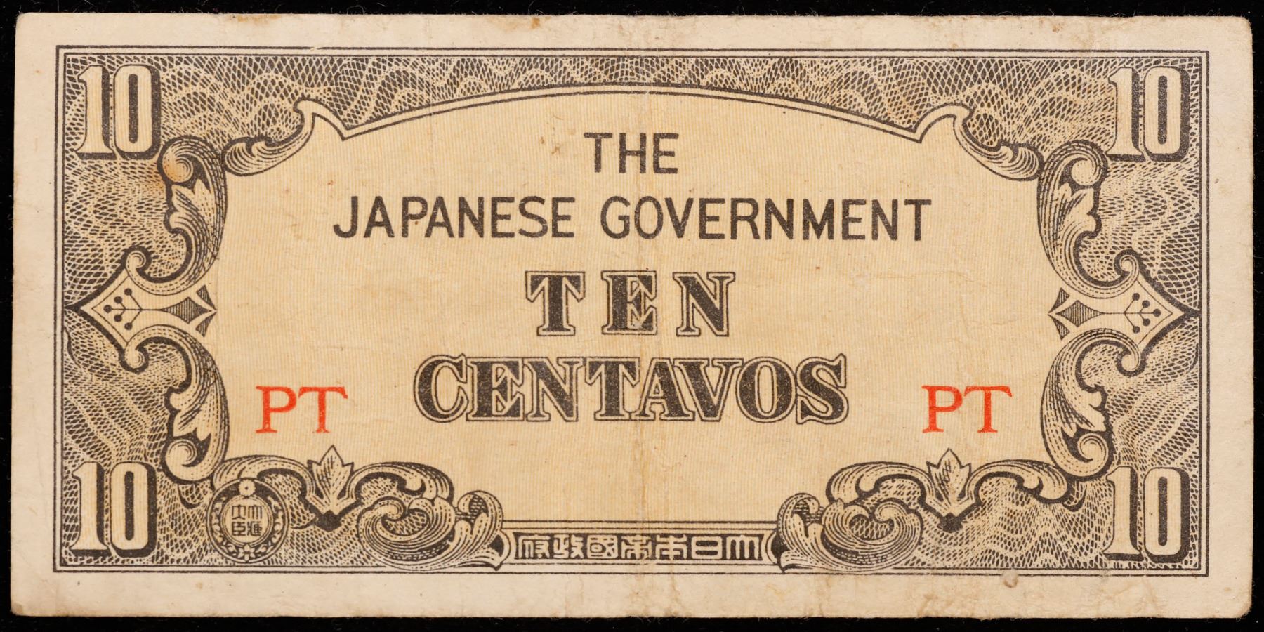1942 Philippines Under Japanese Occupation 10 Centavos Note (JIM) P# 104A Grades vf++. Japanese invasion money, officially known as Southern Development Bank Notes (Japanese: ??????? Dai T?-A Sens? gunpy?, "Greater East Asia War military scrip"), was currency issued by the Japanese Military Authority as a replacement for local currency after the conquest of colonies and other states in World War II. Japan printed this currency for many countries, including Malaysia, Singapore, North Borneo, Sarawak, Burma, Brunei, and several Oceania territories controlled by Australia.