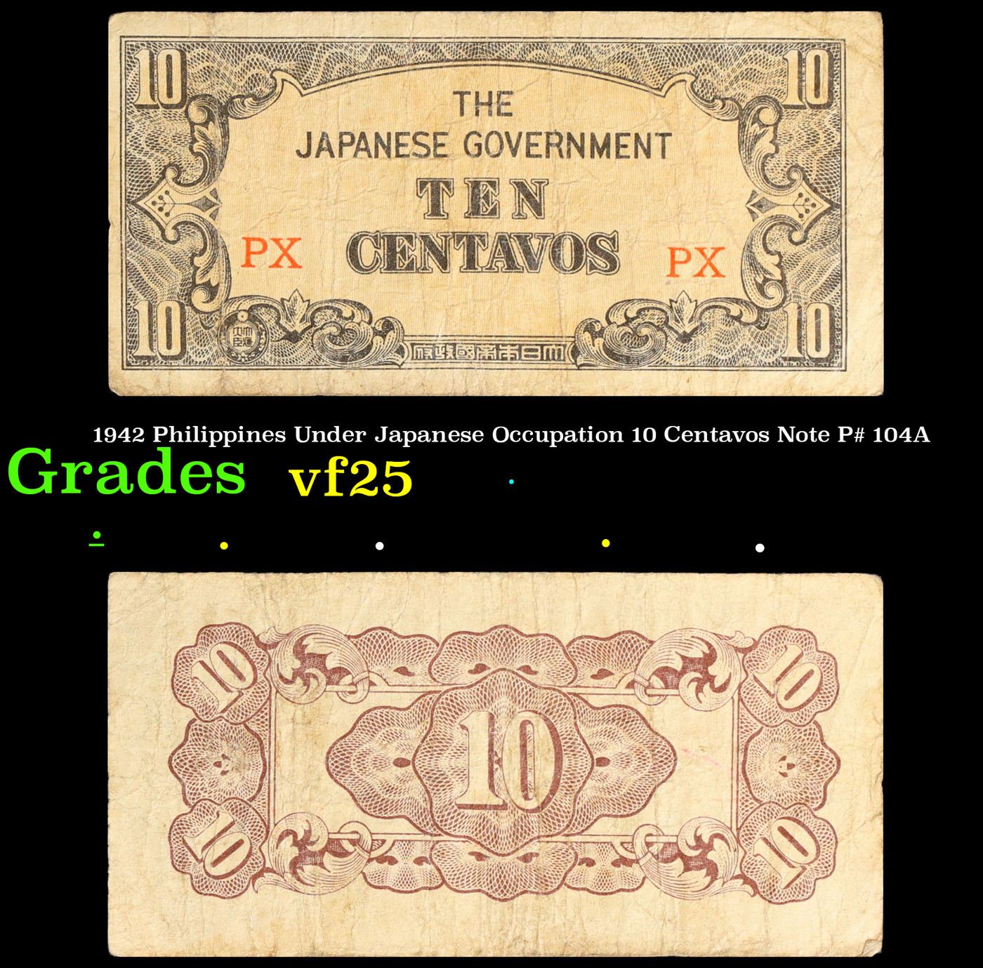 1942 Philippines Under Japanese Occupation 10 Centavos Note P# 104A Grades vf+. Japanese invasion money, officially known as Southern Development Bank Notes (Japanese: ??????? Dai T?-A Sens? gunpy?, "Greater East Asia War military scrip"), was currency issued by the Japanese Military Authority as a replacement for local currency after the conquest of colonies and other states in World War II. Japan printed this currency for many countries, including Malaysia, Singapore, North Borneo, Sarawak, Burma, Brunei, and several Oceania territories controlled by Australia.