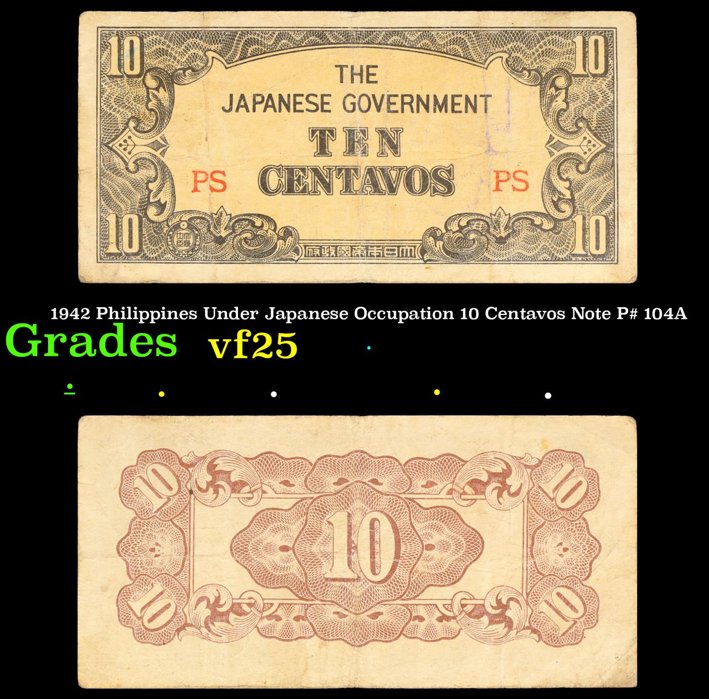 1942 Philippines Under Japanese Occupation 10 Centavos Note P# 104A Grades vf+. Japanese invasion money, officially known as Southern Development Bank Notes (Japanese: ??????? Dai T?-A Sens? gunpy?, "Greater East Asia War military scrip"), was currency issued by the Japanese Military Authority as a replacement for local currency after the conquest of colonies and other states in World War II. Japan printed this currency for many countries, including Malaysia, Singapore, North Borneo, Sarawak, Burma, Brunei, and several Oceania territories controlled by Australia.