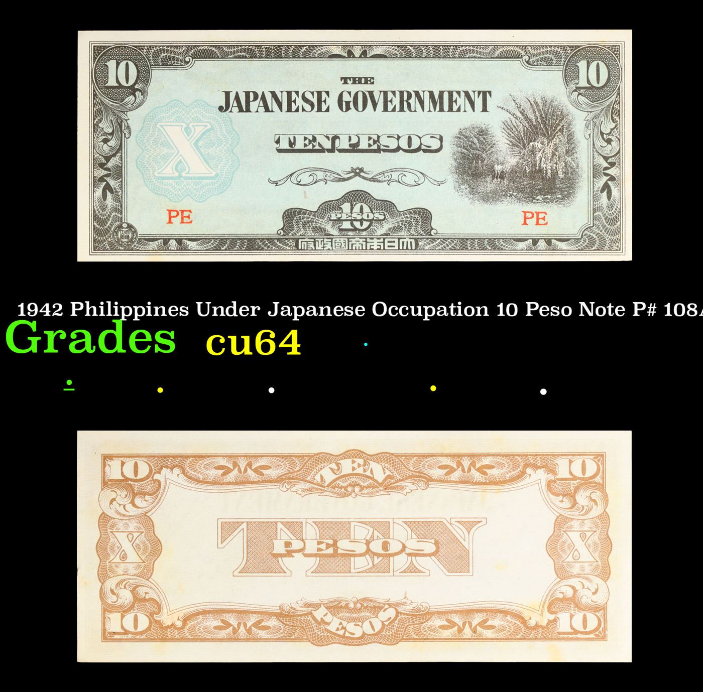 1942 Philippines Under Japanese Occupation 10 Peso Note P# 108A Grades Choice CU. Japanese invasion money, officially known as Southern Development Bank Notes (Japanese: ??????? Dai T?-A Sens? gunpy?, "Greater East Asia War military scrip"), was currency issued by the Japanese Military Authority as a replacement for local currency after the conquest of colonies and other states in World War II. Japan printed this currency for many countries, including Malaysia, Singapore, North Borneo, Sarawak, Burma, Brunei, and several Oceania territories controlled by Australia.