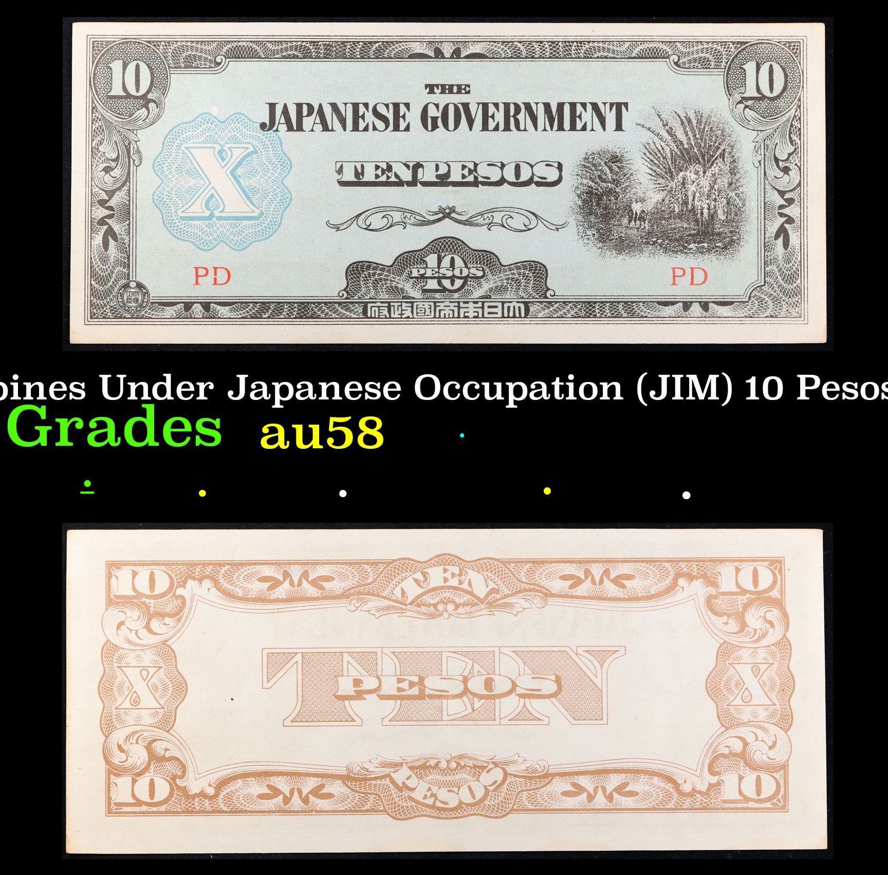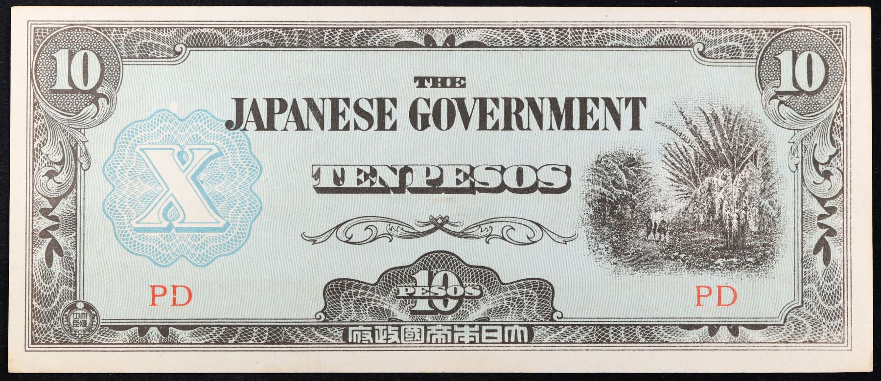 1942 Philippines Under Japanese Occupation (JIM) 10 Pesos Note P: 108A Grades Choice AU/BU Slider.
