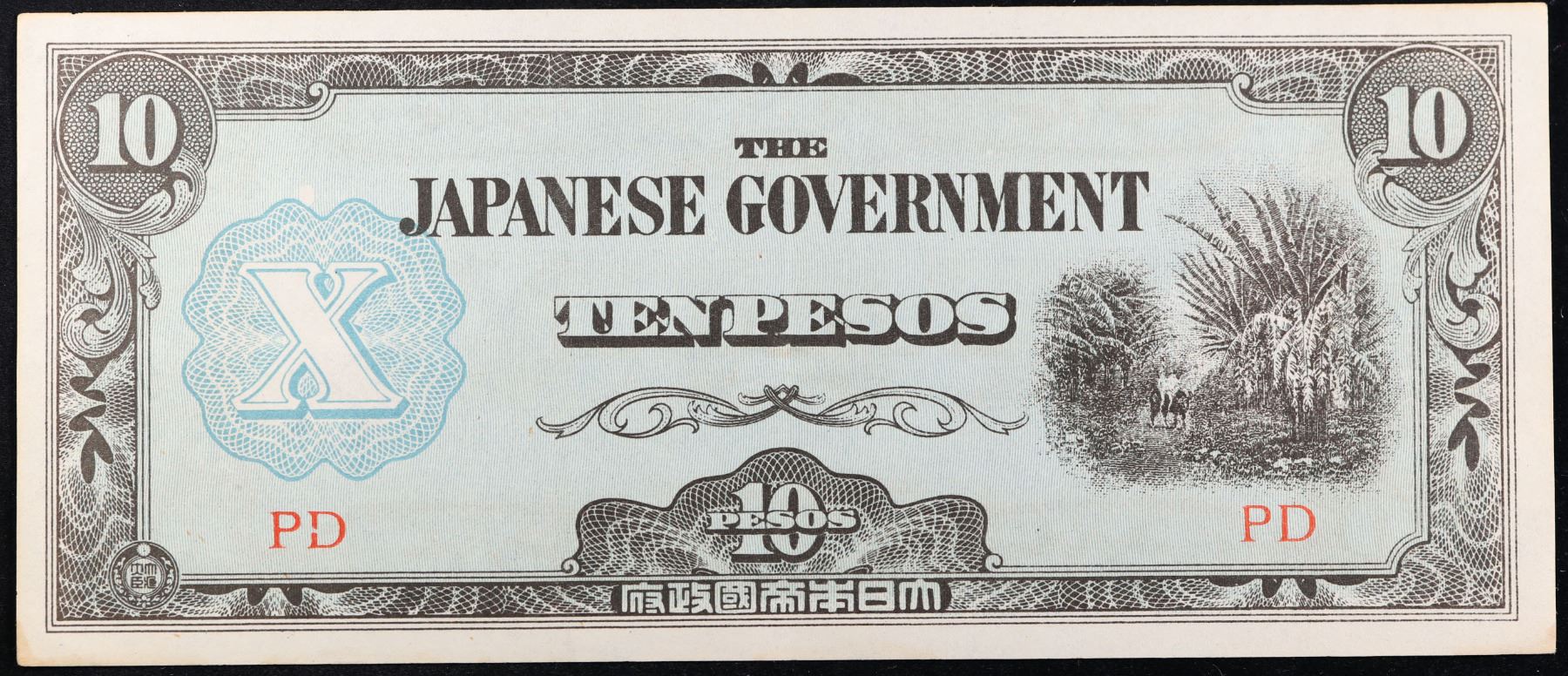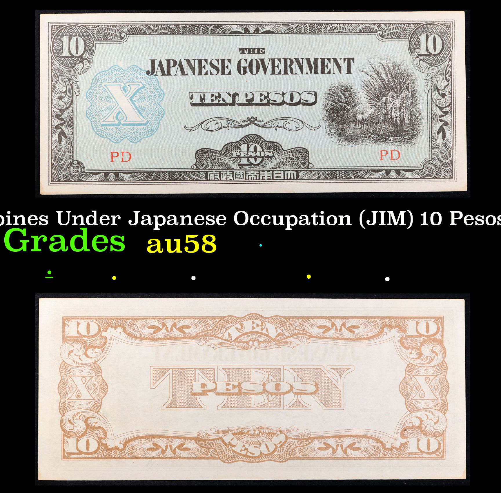 1942 Philippines Under Japanese Occupation (JIM) 10 Pesos Note P: 108A Grades Choice AU/BU Slider.