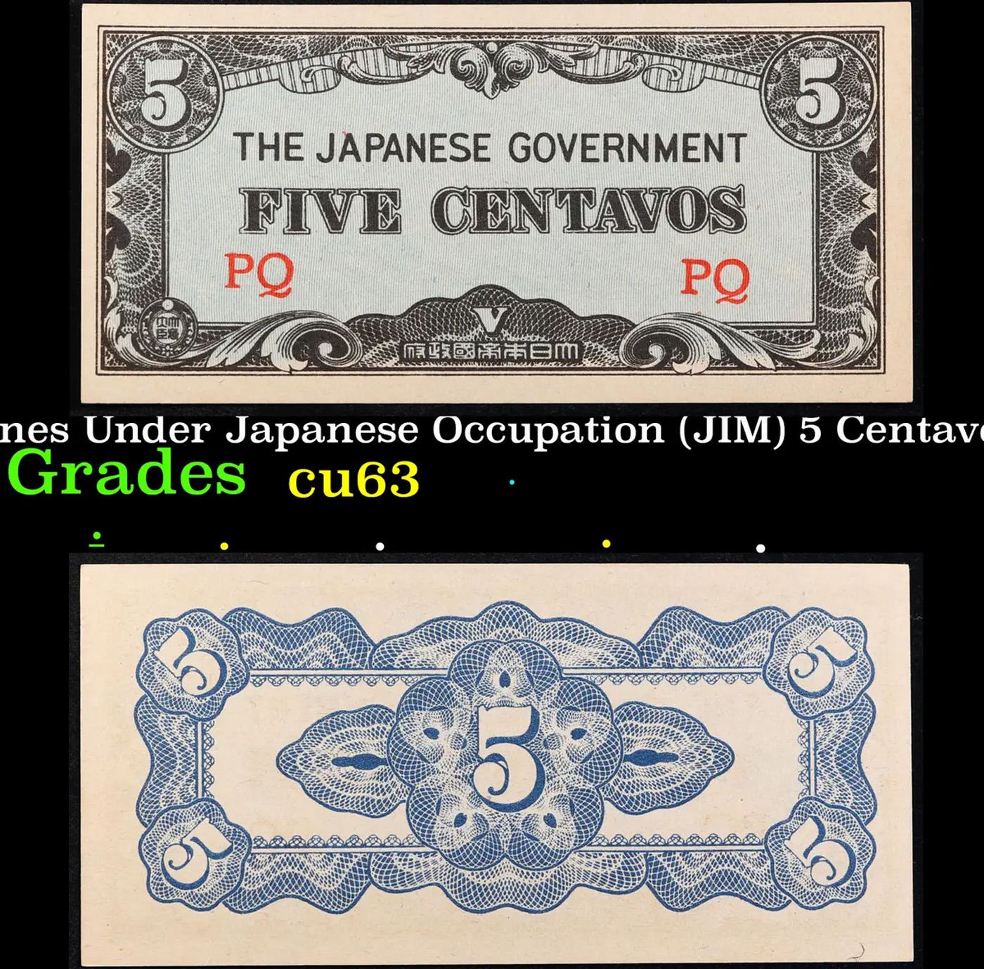 1942 Philippines Under Japanese Occupation (JIM) 5 Centavos Note P: 103A Grades Select CU.