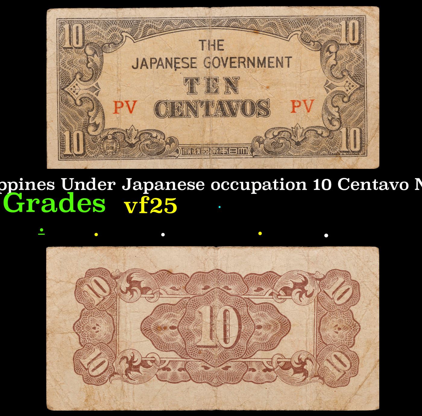 1942 Philippines Under Japanese occupation 10 Centavo Note P# 104A Grades vf+. Japanese invasion money, officially known as Southern Development Bank Notes (Japanese: ??????? Dai T?-A Sens? gunpy?, "Greater East Asia War military scrip"), was currency issued by the Japanese Military Authority as a replacement for local currency after the conquest of colonies and other states in World War II. Japan printed this currency for many countries, including Malaysia, Singapore, North Borneo, Sarawak, Burma, Brunei, and several Oceania territories controlled by Australia.