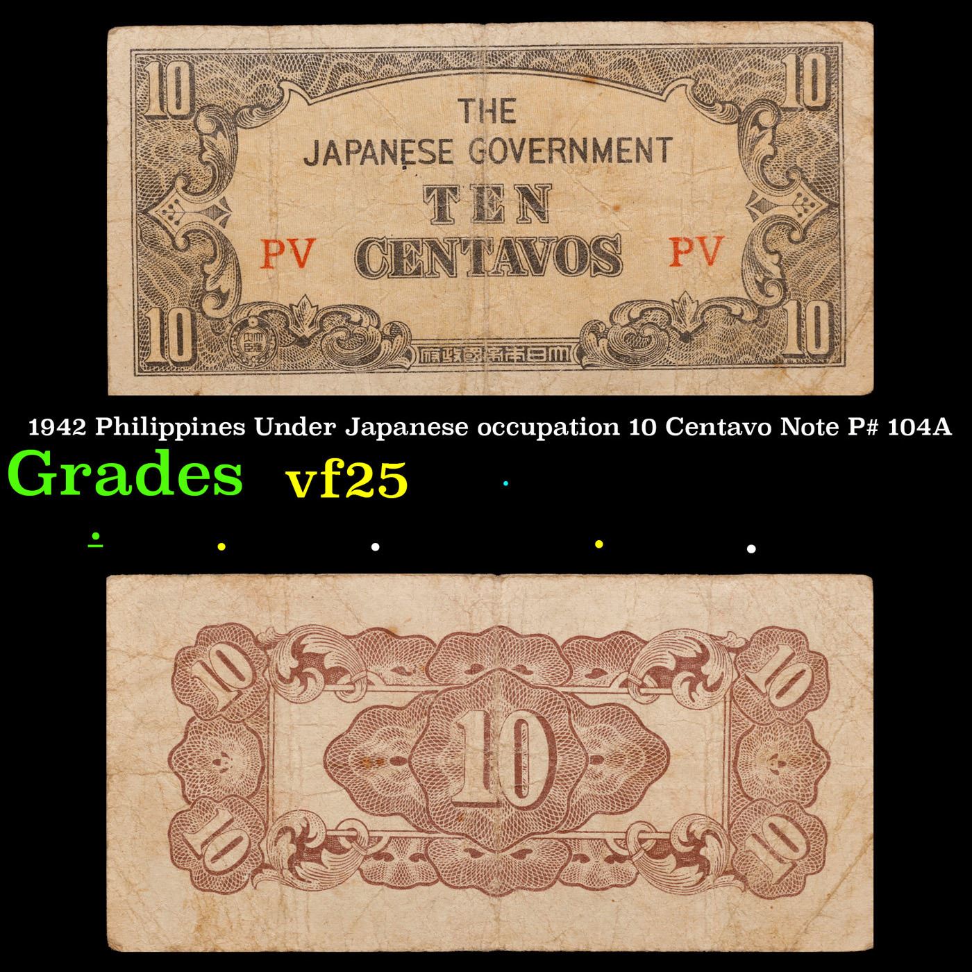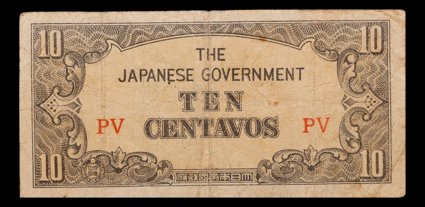 1942 Philippines Under Japanese occupation 10 Centavo Note P# 104A Grades vf+. Japanese invasion money, officially known as Southern Development Bank Notes (Japanese: ??????? Dai T?-A Sens? gunpy?, "Greater East Asia War military scrip"), was currency issued by the Japanese Military Authority as a replacement for local currency after the conquest of colonies and other states in World War II. Japan printed this currency for many countries, including Malaysia, Singapore, North Borneo, Sarawak, Burma, Brunei, and several Oceania territories controlled by Australia.