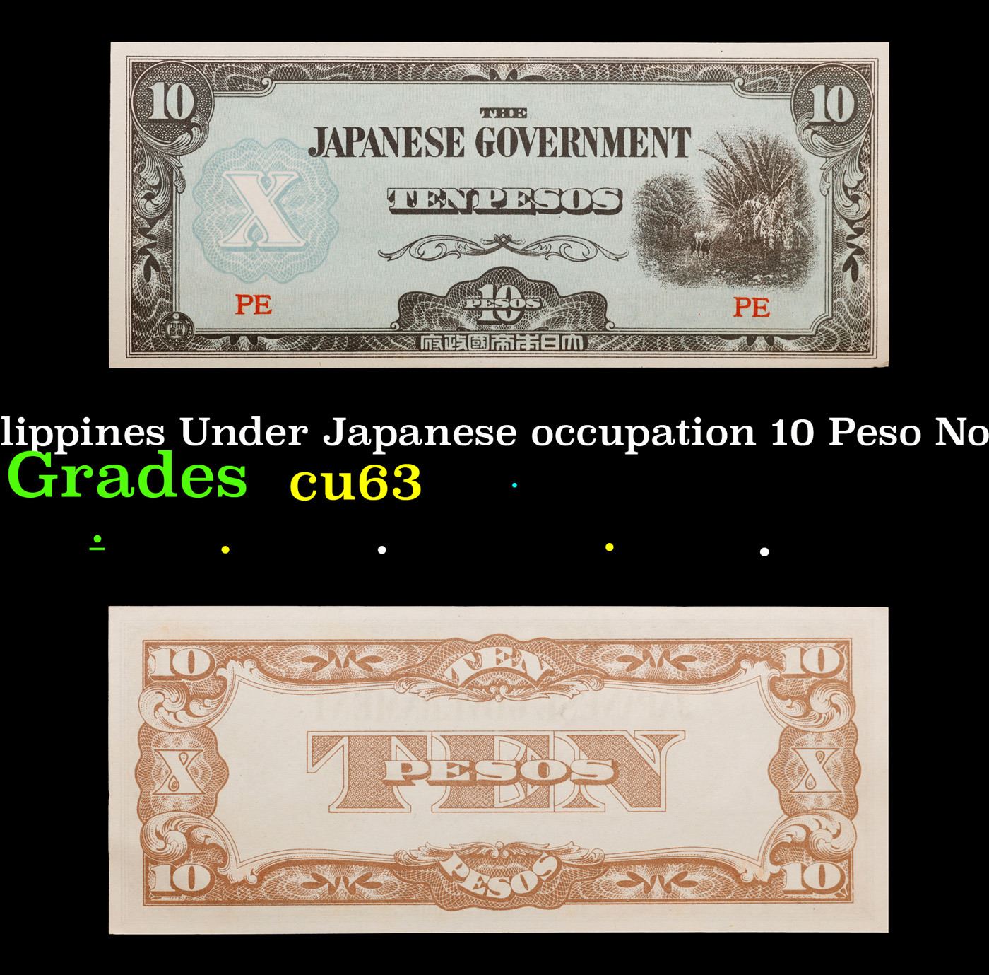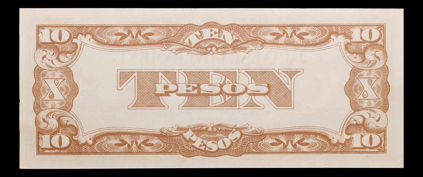 1942 Philippines Under Japanese occupation 10 Peso Note P# 108A Grades Select CU. Japanese invasion money, officially known as Southern Development Bank Notes (Japanese: ??????? Dai T?-A Sens? gunpy?, "Greater East Asia War military scrip"), was currency issued by the Japanese Military Authority as a replacement for local currency after the conquest of colonies and other states in World War II. Japan printed this currency for many countries, including Malaysia, Singapore, North Borneo, Sarawak, Burma, Brunei, and several Oceania territories controlled by Australia.
