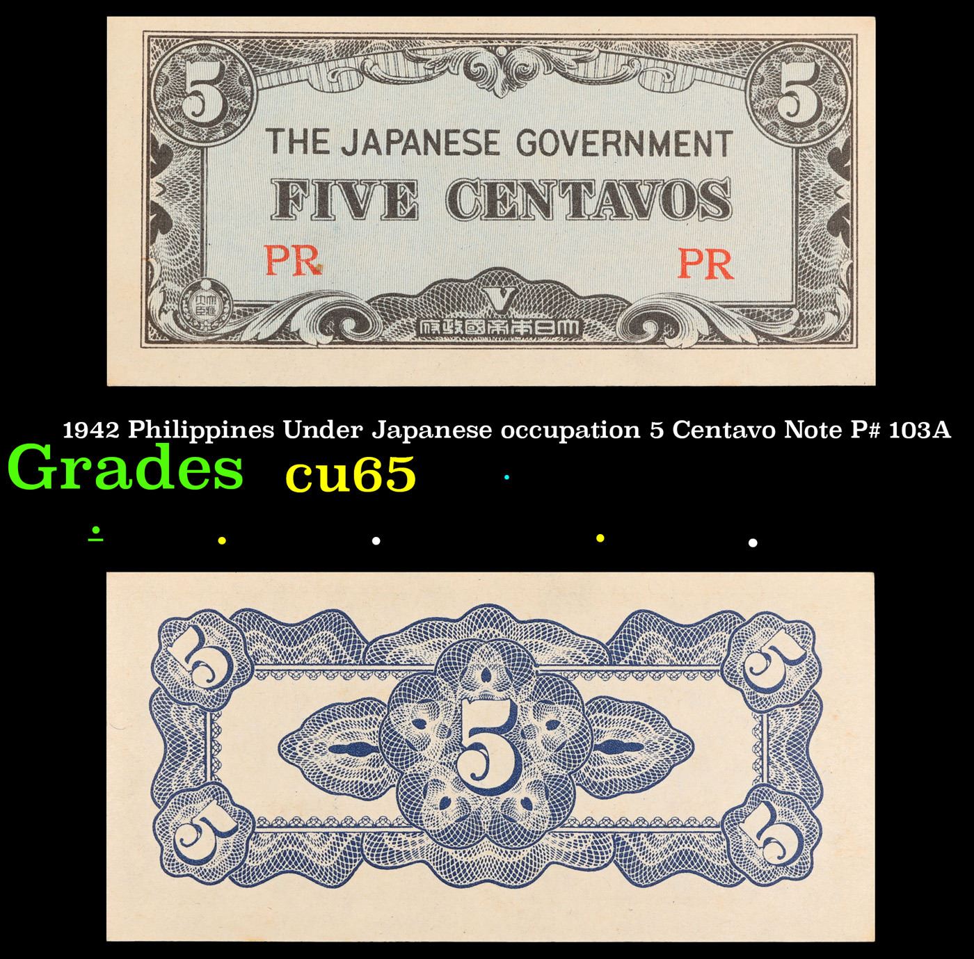 1942 Philippines Under Japanese occupation 5 Centavo Note P# 103A Grades Gem CU