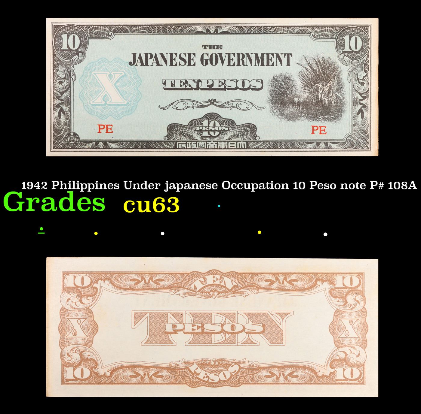 1942 Philippines Under japanese Occupation 10 Peso note P# 108A Grades Select CU