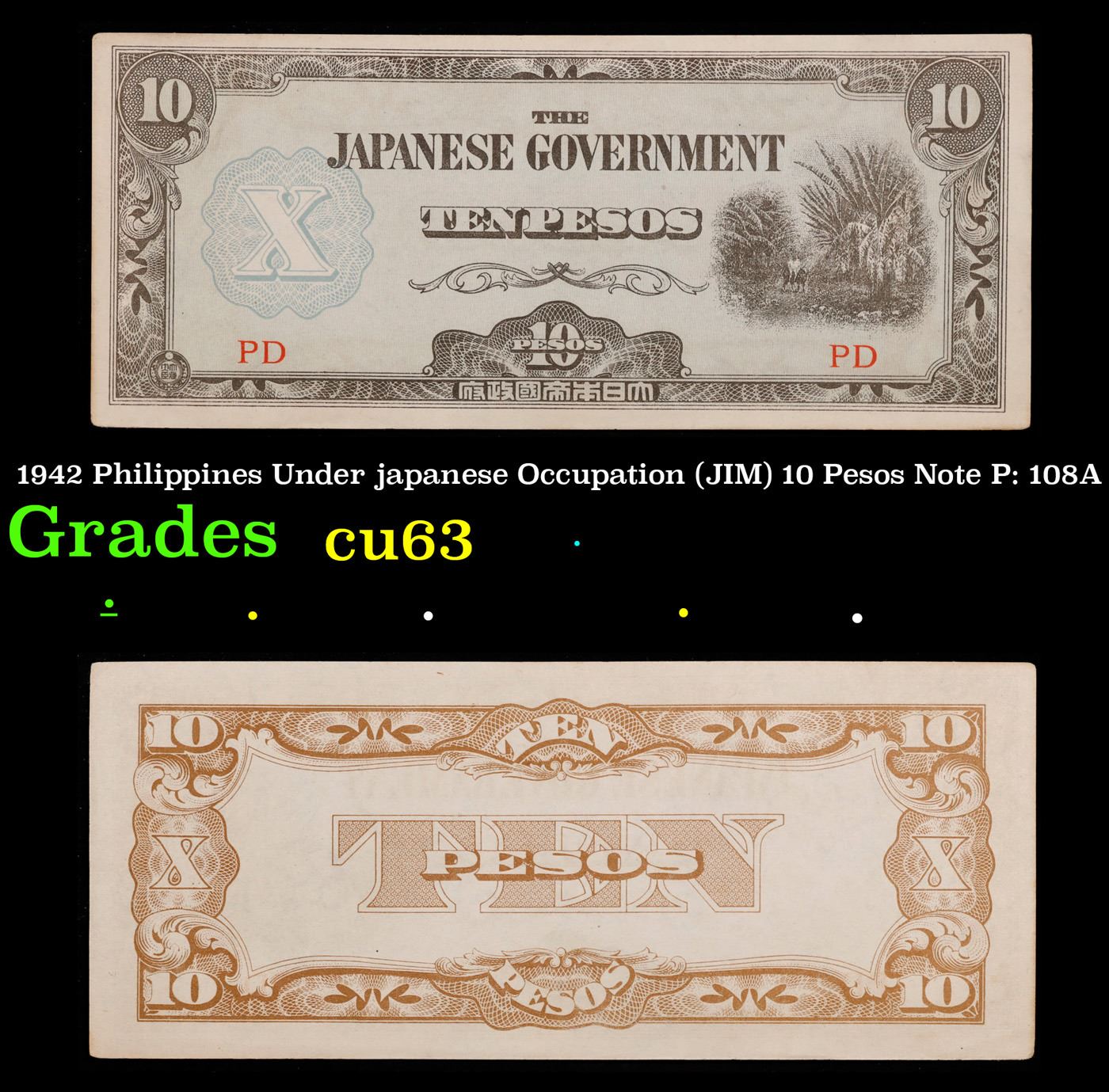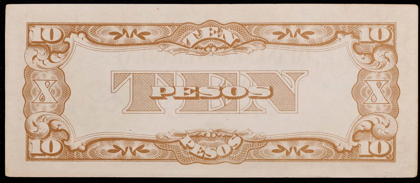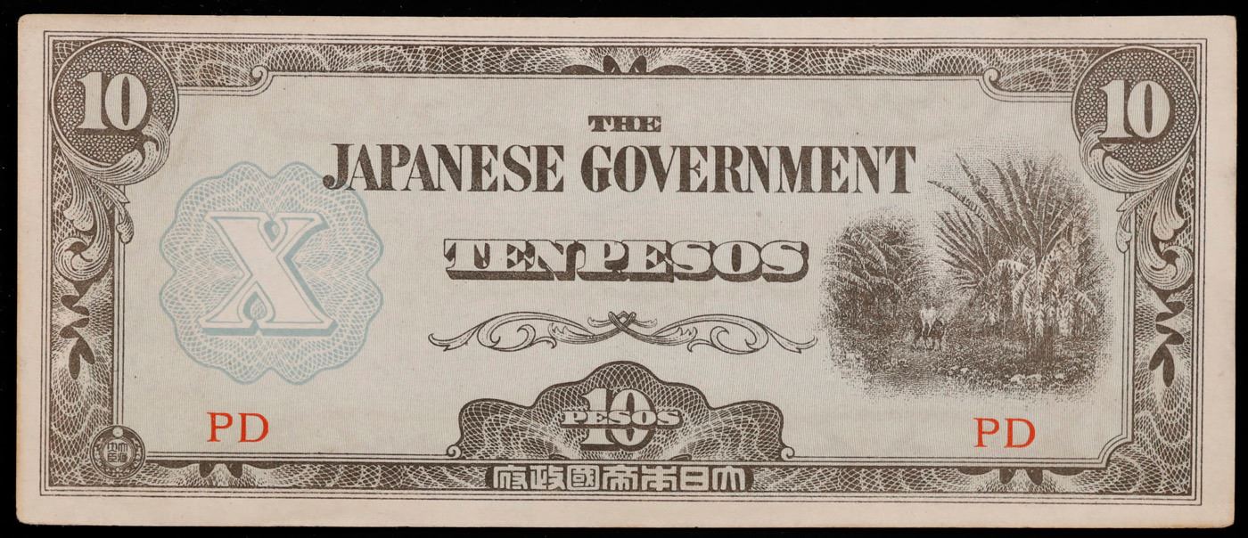 1942 Philippines Under japanese Occupation (JIP) 10 Pesos Note P: 108A Grades Select CU.
