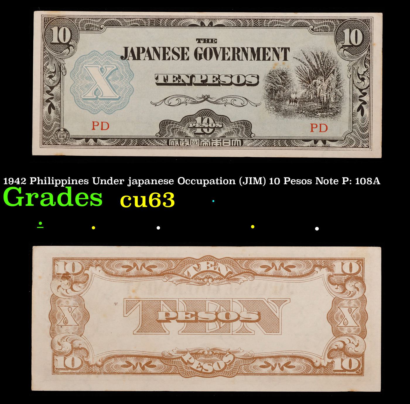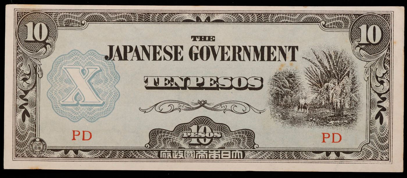 1942 Philippines Under japanese Occupation (JIP) 10 Pesos Note P: 108A Grades Select CU.