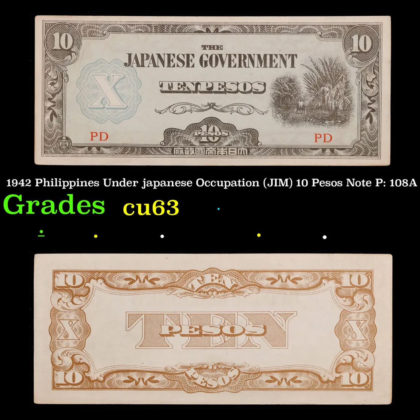 1942 Philippines Under japanese Occupation (JIP) 10 Pesos Note P: 108A Grades Select CU.