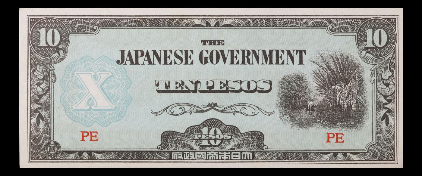 1942 Philippines under Japanese Occupation 10 Peso Note P: 108A Grades Select CU.