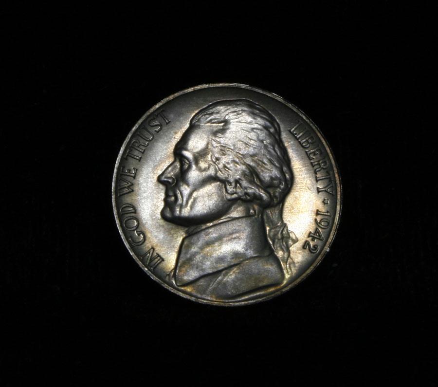 Scarce Proof Jefferson Nickel. This example has a light tone. PCGS lists a PR64 at $75. Estimated Value $50