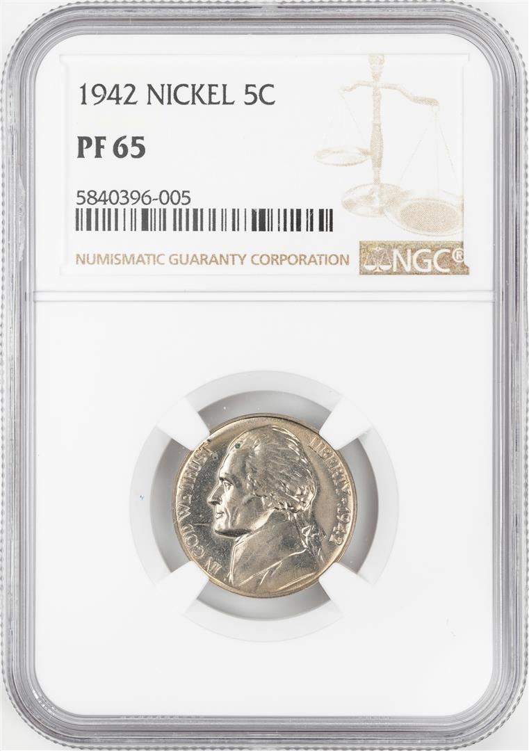One 1942 Proof Jefferson Nickel Coin NGC PF65. NGC Certified.
