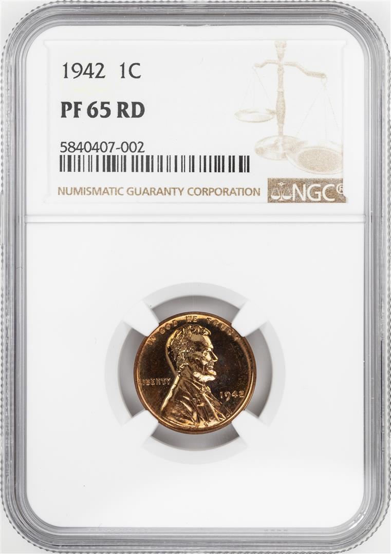 One 1942 Proof Lincoln Wheat Cent Coin NGC PF65RD. NGC Certified.