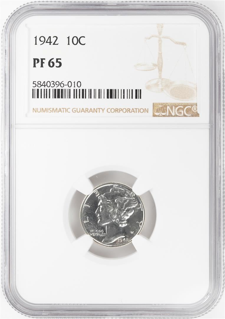 One 1942 Proof Mercury Dime Coin NGC PF65. NGC Certified.