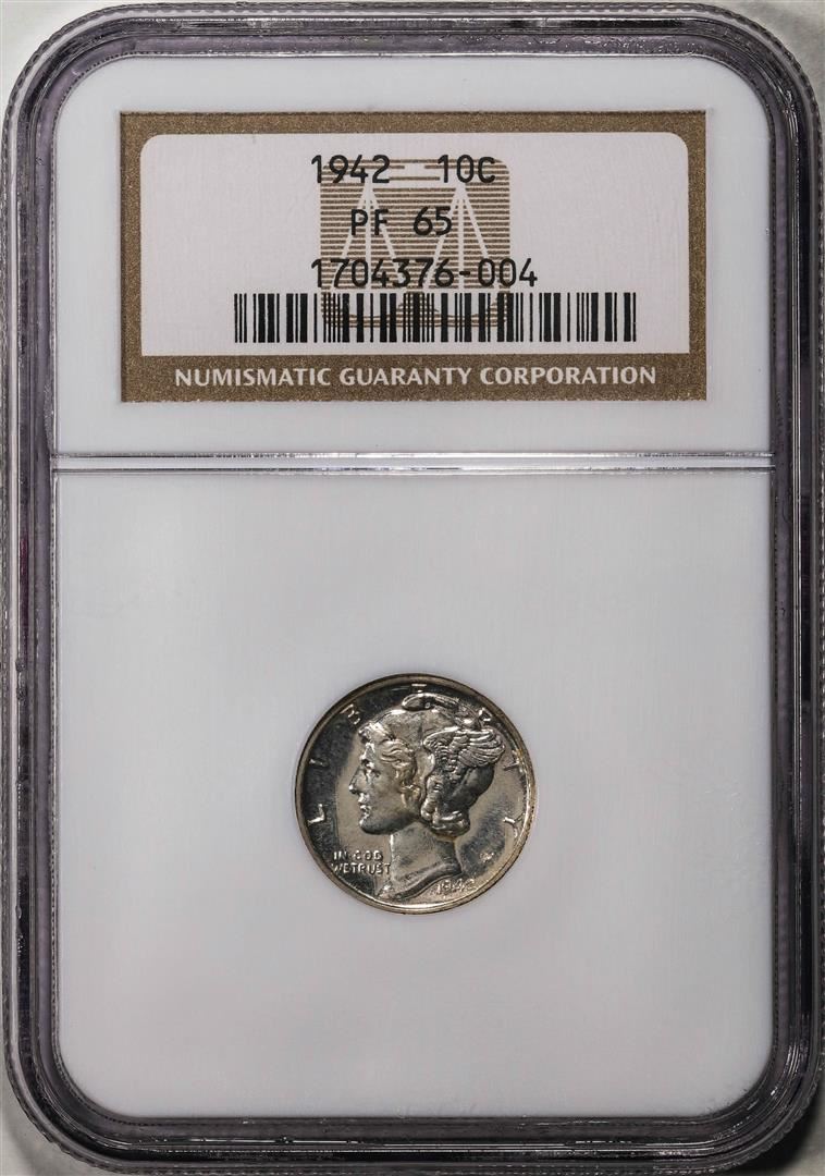 One 1942 Proof Mercury Dime Coin NGC PF65. NGC Certified.