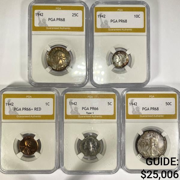 1942 Proof Set (5) 1C, 5C, 10C, 25C, & 50C PGA-PR