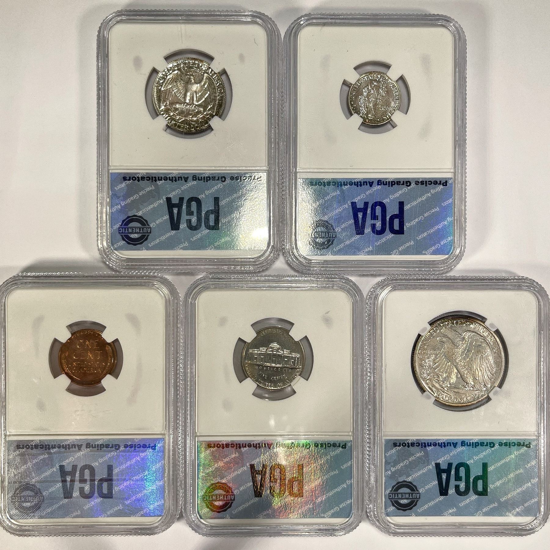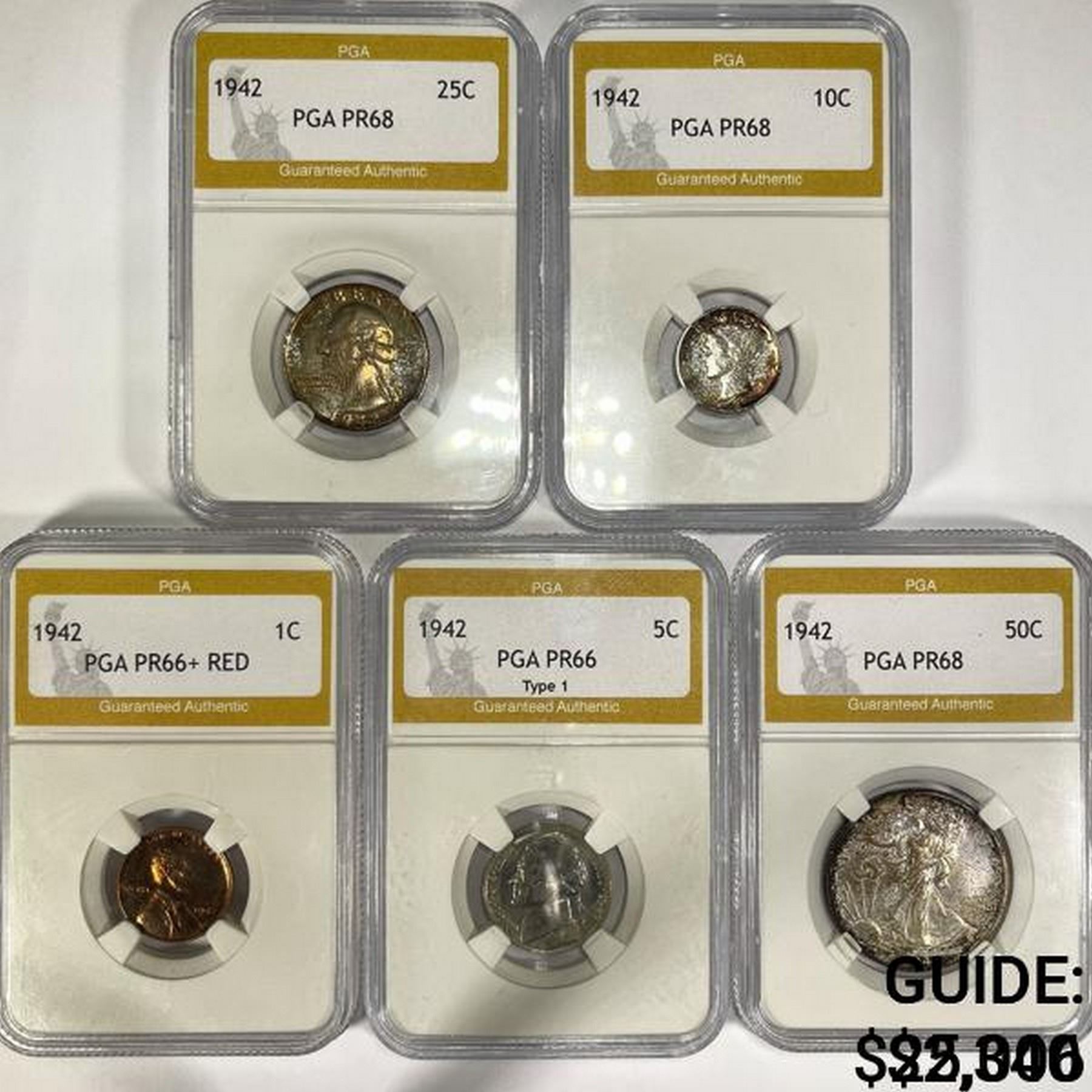1942 Proof Set (5) 1C, 5C, 10C, 25C, & 50C PGA PR