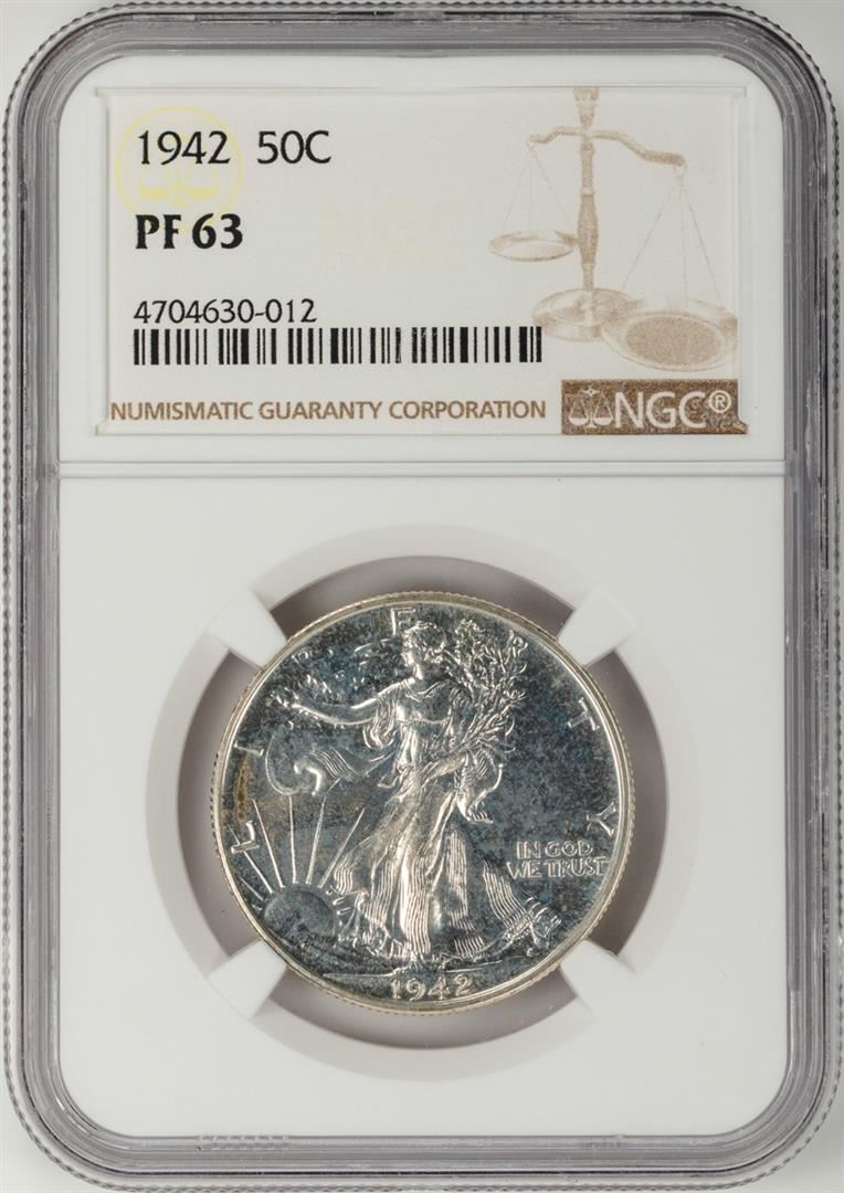 One 1942 Proof Walking Liberty Half Dollar Coin NGC PF63. NGC Certified.