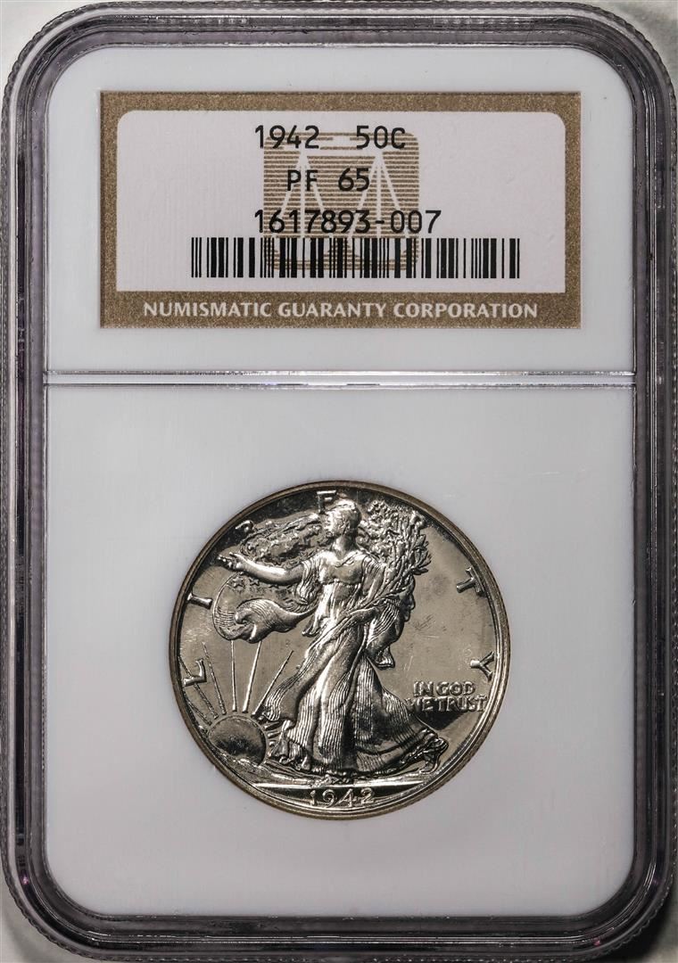 One 1942 Proof Walking Liberty Half Dollar Coin NGC PF65. NGC Certified.