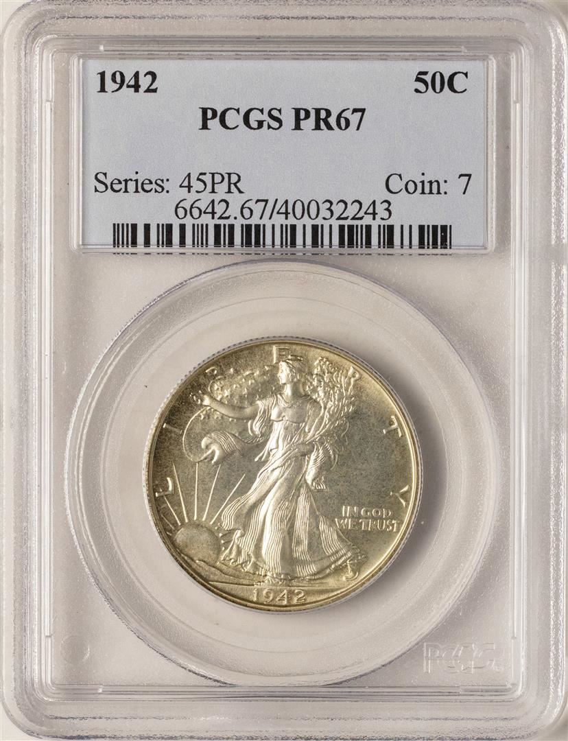 One 1942 Proof Walking Liberty Half Dollar Coin PCGS PR67. PCGS Graded.