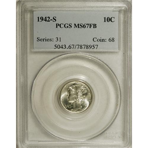 1942-S 10C MS67 Full Bands PCGS. Highly lustrous and l