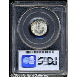 <B>1942-S<10C> MS67 Full Bands PCGS.</B></I> A sharp strike and exquisite luster characterize this S-mint Mercury dime. The surfaces are nearly untoned except for light-gold coloration around the left borders of both sides. A couple of tiny, hardly noticeable marks on Mercury's neck are not distracting. Population: 45 in 67, 0 finer (3/04). <BR><BR><B>Important notice:</B> Heritage usually auctions material at the rate of 200-250 lots per hour. On some occasions eBay Live bid software or the Internet may not be able to keep up with the pace of the auction. We recommend placing a realistic absentee bid now as insurance to avoid disappointment. Occasionally the auctioneer may eliminate or reject an eBay Live bid, and the auctioneer may also reopen a lot after the close of the eBay live bidding (usually because we missed an audience bid), and may reject your bid even if it shows you as the winning bidder. By bidding via eBay Live, you agree that Heritage may award the lot to another bidder at its sole discretion under the circumstances described above or any other reasonable circumstances. Since eBay bids are not shown to us until we open the lot on the floor, we treat those bids just like floor bids. In most cases the floor responds before the eBay bid is presented to us, due to Internet lag time, so for consistency we have made it a policy that floor bids are always considered first over tie eBay live bids. Also please note that all Heritage lots purchased through eBay Live carry a 20% Buyer's Premium. Please make sure you read the Terms and Conditions before you bid. </span></font></tr></table></td></tr></table>