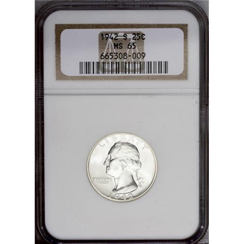 1942-S 25C MS65 NGC. Radiant mint luster, the surfaces 1942-S[25C] MS65 NGC.