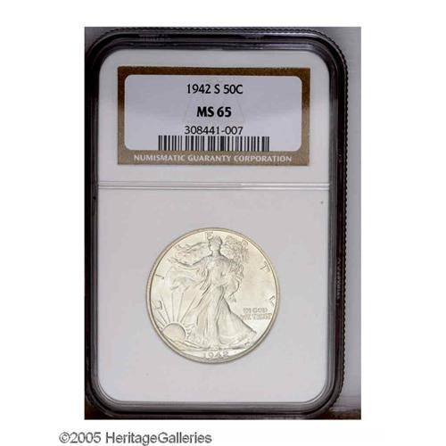 1942-S 50C MS65 NGC. Bright lustrous surfaces are esse 1942-S[50C] MS65 NGC.