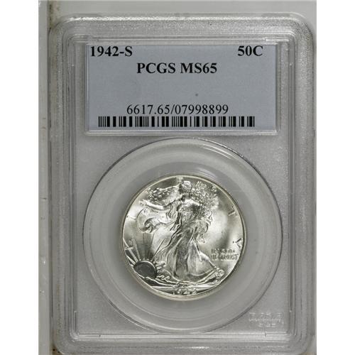 1942-S 50C MS65 PCGS. Trumpet tail S. This brilliant a