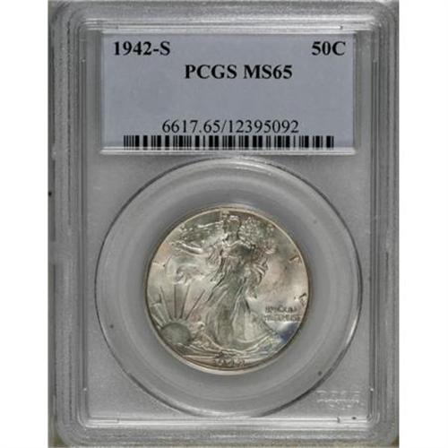<B>1942-S 50C MS65 PCGS.</B></I> PCGS Population (1977/302). NGC Census: (960/159). Mintage: 12,708,000. Numismedia Wsl. Price for NGC/PCGS coin in MS65: $470. (#6617)<BR><BR><B>Coin Engraver:</B> Adolph A. Weinman<BR><BR><b>Shipping:</b> Coins & Currency (<a target="_blank" href="http://www.heritageauctions.com/common/shipping.php">view shipping information</a>)
