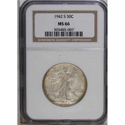 1942-S 50C MS66 NGC. A lustrous and well-preserved pie
