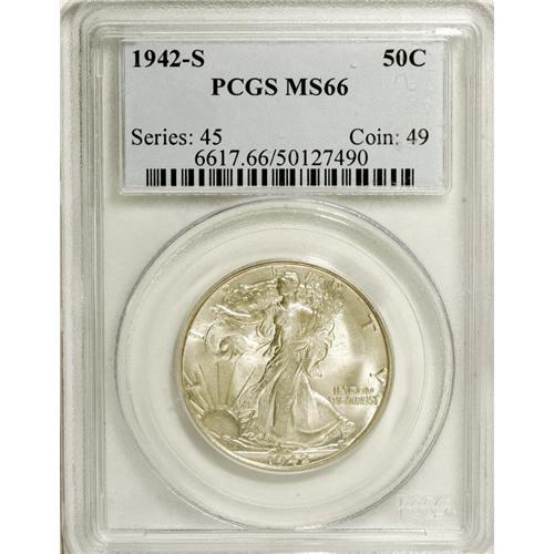 1942-S 50C MS66 PCGS. A lustrous and well struck short