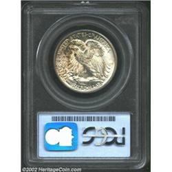 1942-S 50C MS66 PCGS. In order to deliver such a large total of 12.7 million Half Dollars during the rushed atmosphere of 1942, the San Francisco Mint had to prolong die life to an unacceptable degree. The result was millions of poorly struck coins, many of which are on today's market in circulated and low Mint State grades. What sets the present Gem apart from those coins is the impressively sharp strike that includes appreciable definition over the focal features. There is not a single distracting blemish, and the luster is frosty, full, and vibrant. Splashes of dappled golden-russet color are seen at the lower left obverse rim and over the left reverse. PCGS has yet to certify a single 1942-S Walker above the MS66 grade level (9/02). Important notice: We expect to be auctioning lots at the rate of 200-250 per hour. Sometimes eBay Premier live bid software cannot keep up with that pace, so we strongly recommend that you place a realistic proxy bid now as insurance to avoid disappointment. Also please note that all Heritage/CAA lots purchased through eBay Premier carry a 20% Buyer's Premium. Please make sure you read the Terms and Conditions.
