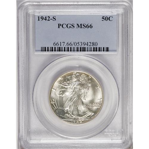 1942-S 50C MS66 PCGS. The satiny surfaces have crescen