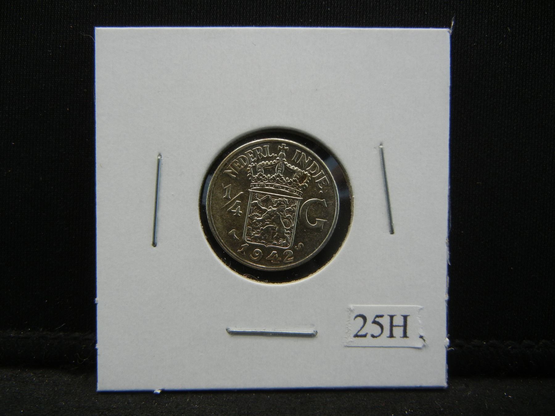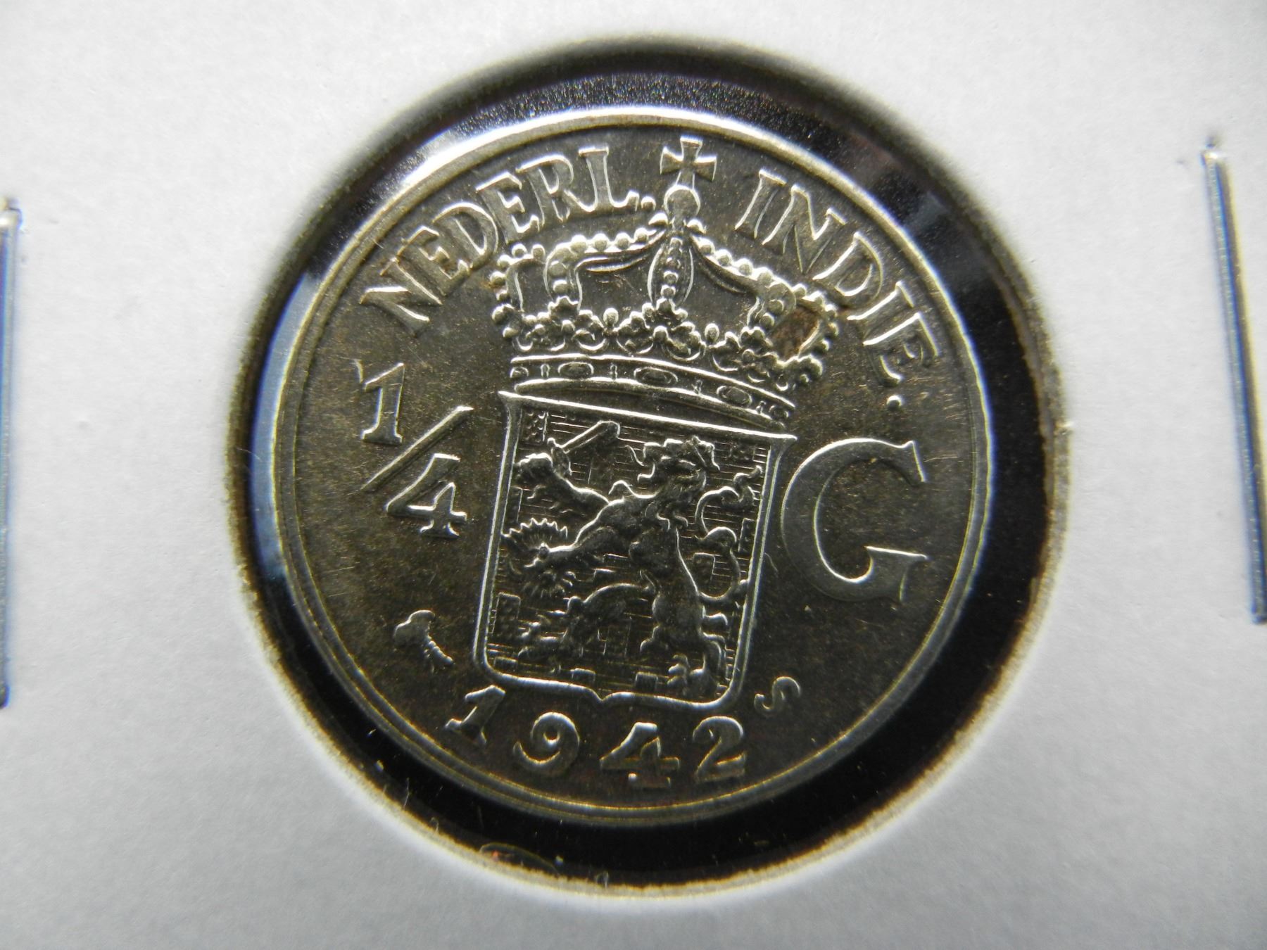 1942 S Dutch E Indies SILVER 1/4 Guilder. GEM UNC