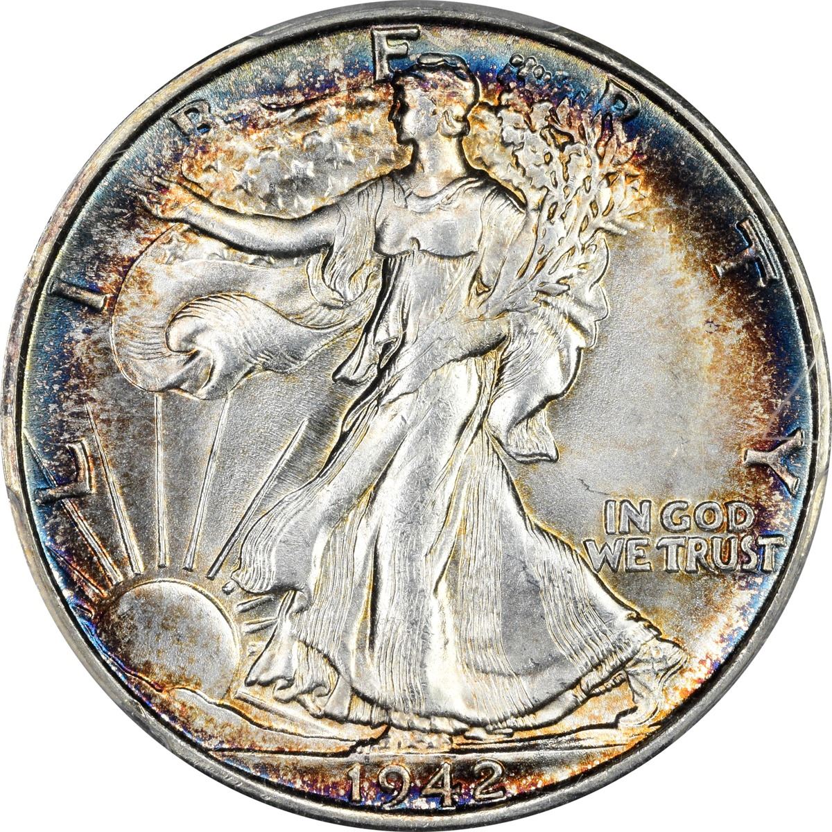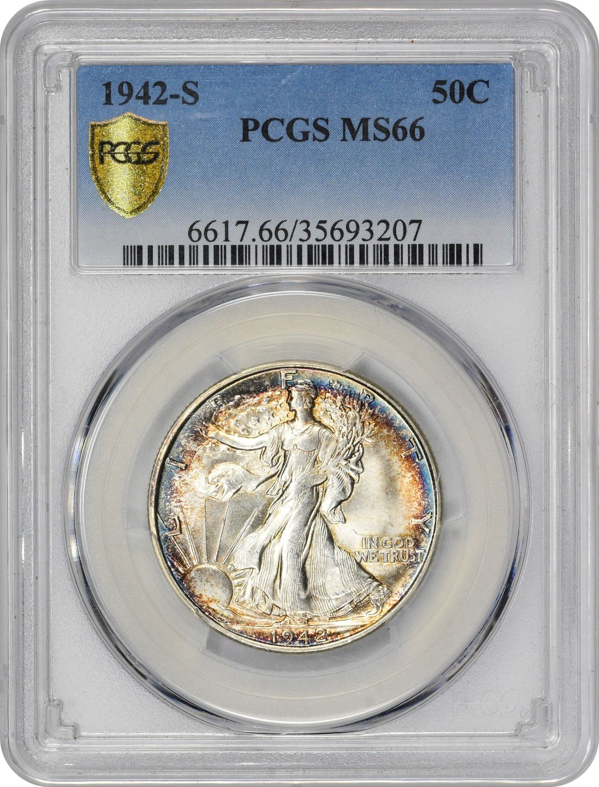 Here is a coin that is about as sharp as ever seen for the date, and that offers fully brilliant centers and rainbow iridescence at the rims. Words don’t do justice to this lovely gem half dollar. PCGS #6617