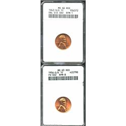 1942-S/S 1C MS66 Red ANACS, FS-18.94, RPM-1, the obverse is die doubled, most noticeably on the 9 in