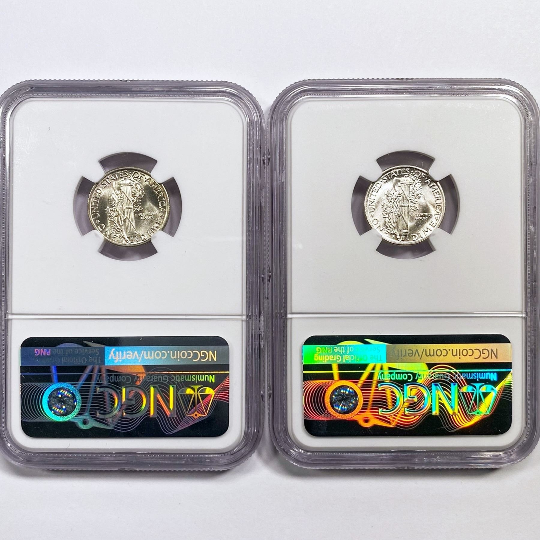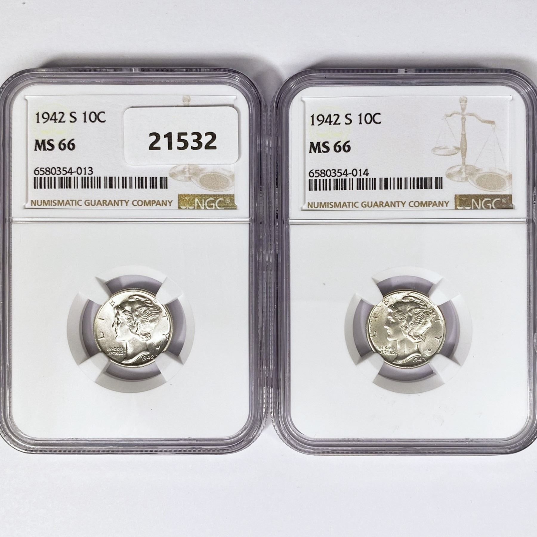 1942-S Set (2) Mercury Silver Dime NGC MS66